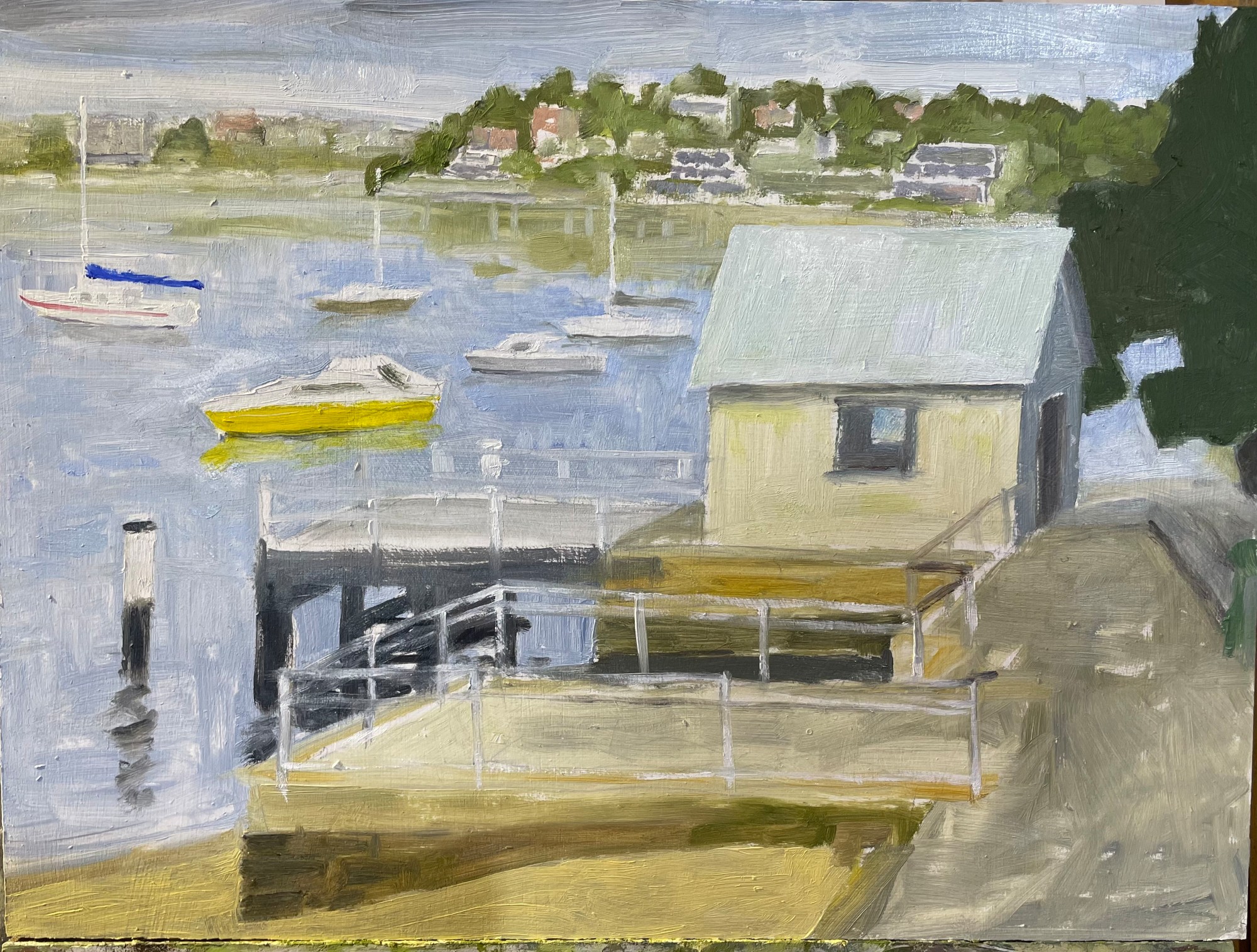 A small boatshed and wharf no longer used as a ferry stop, in the old Gladesville Hospital site.
