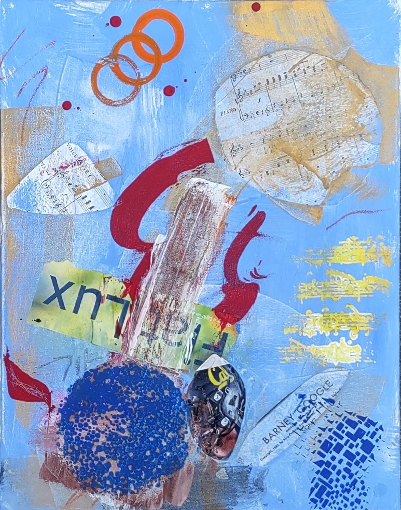 Acrylic, pastel, collage on canvas