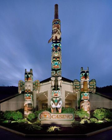 An early head chief, T'Chits-a-ma-hun stood for peace between the S'Klallen and the white settlers. To him, history gives credit for keeping the settlers of Port Townsend from massacre during what historians call the Indian Wars of the 1850's. On this pole, T'Chits-a-ma-hun holds up his hand in greeting the early settlers. In his other hand, he holds the blanket with which he signaled the settlers of danger. Above T'Chits-a-ma-hun is the figure of Thunderbird, a powerful guardian spirit associated with the S'Klallam people.
