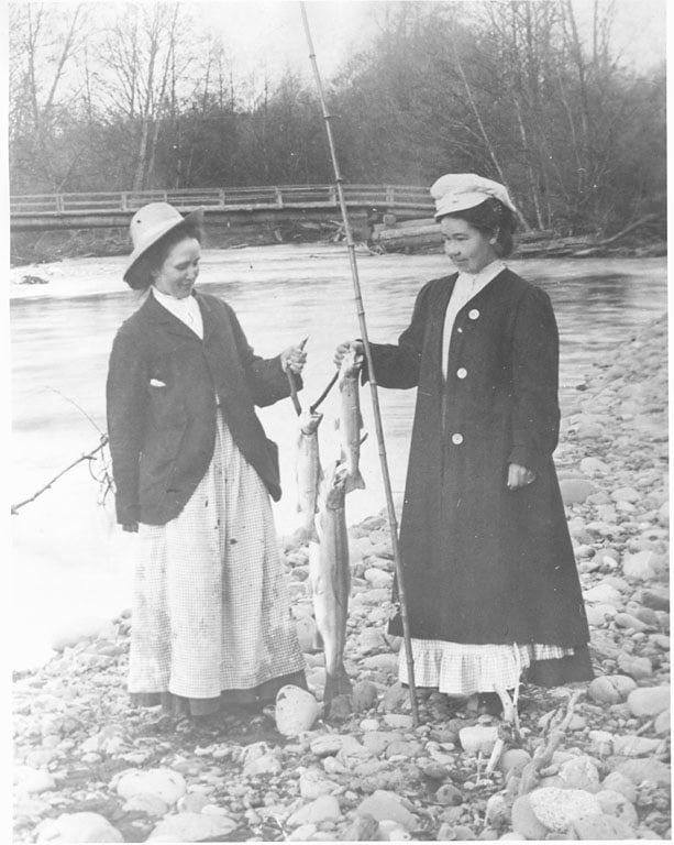 - Lizzie Flemming and a friend fishing on the Dungeness River