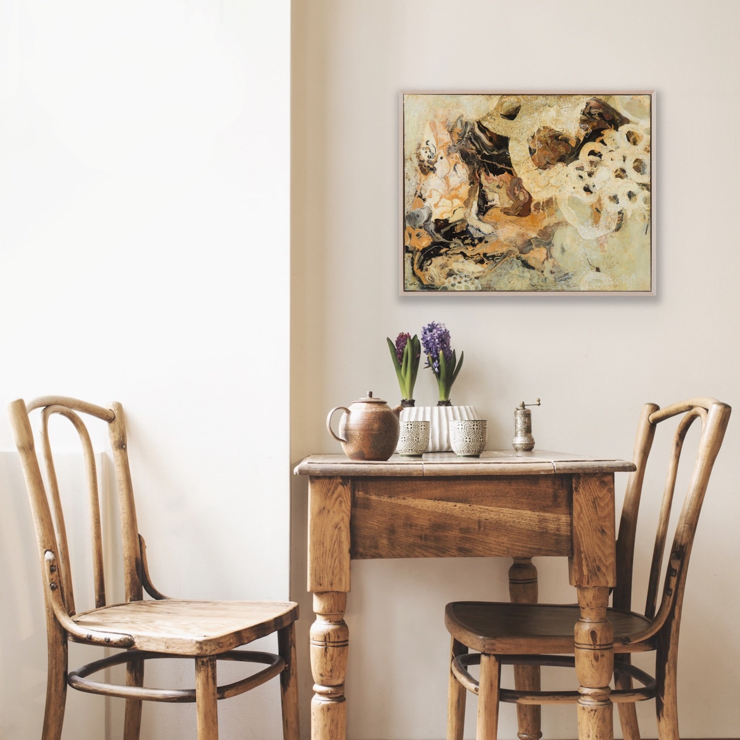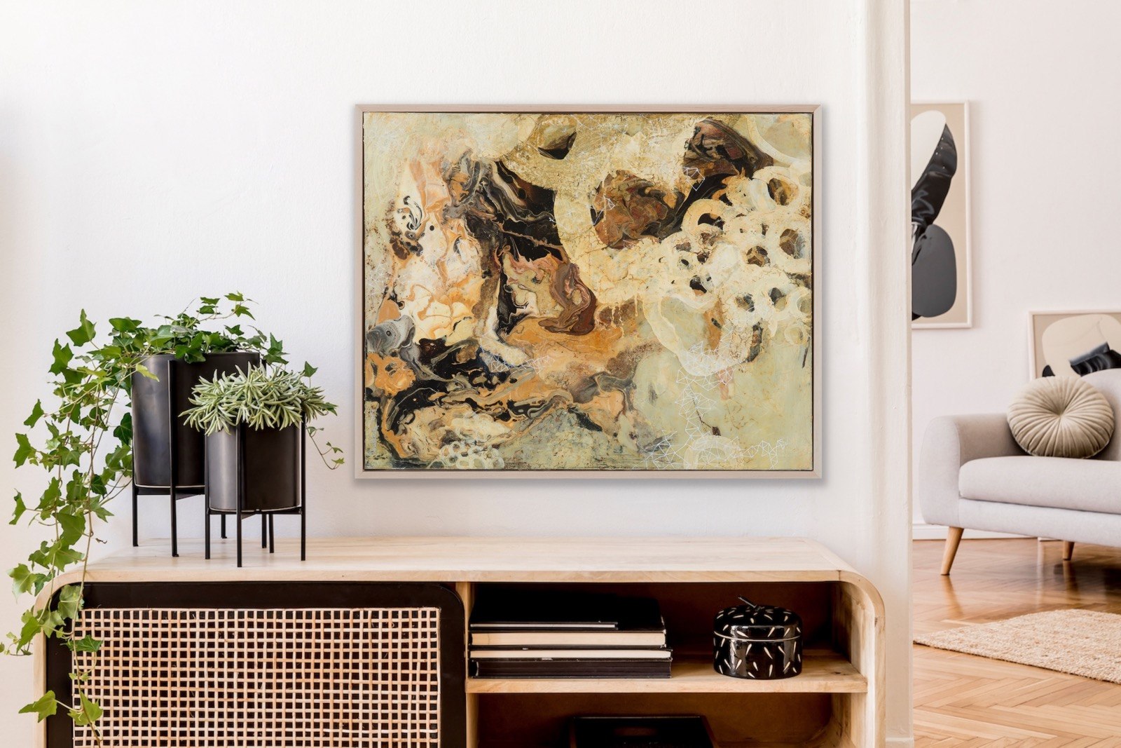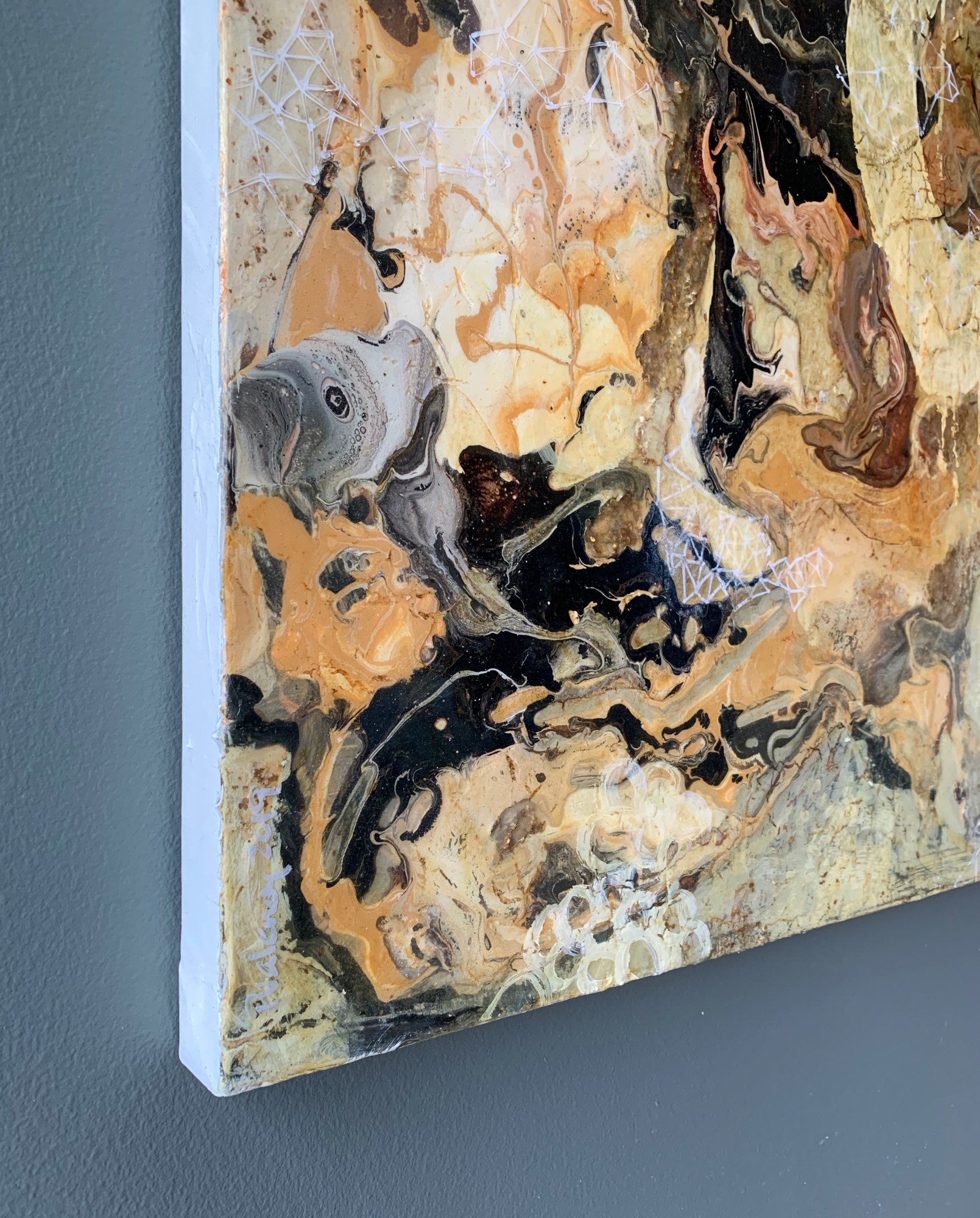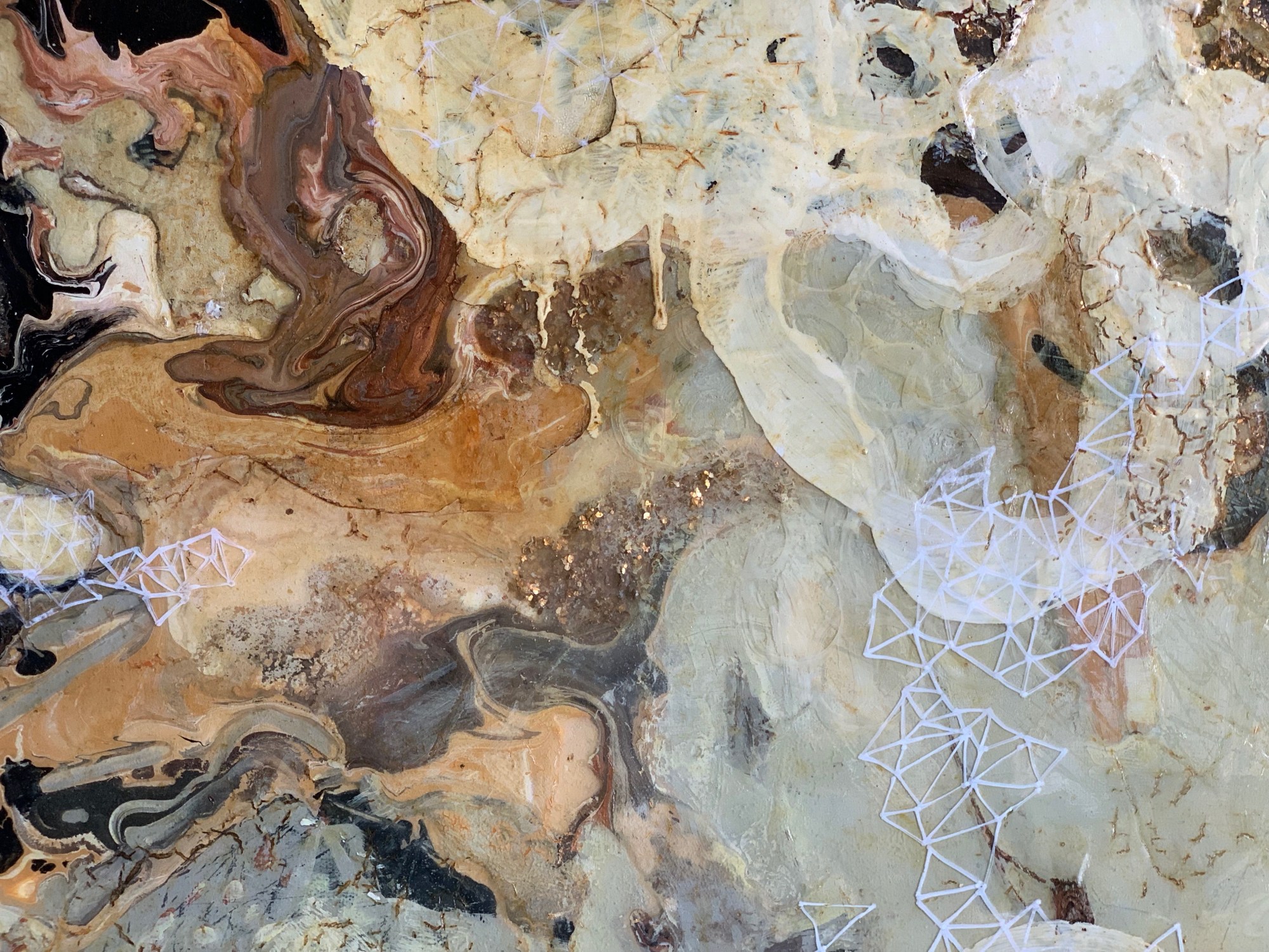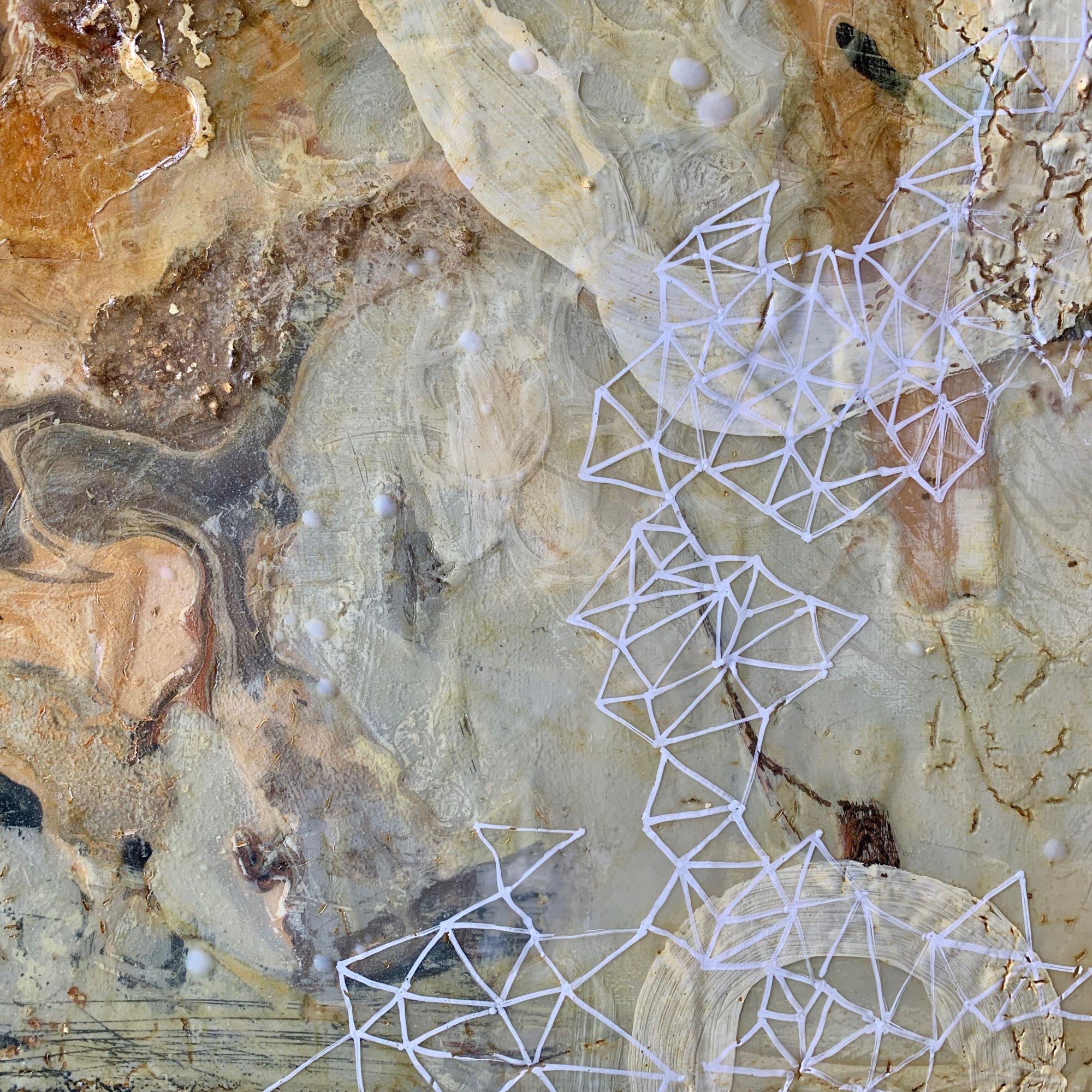 This painting is special to me because it’s the one that made me connect two areas that I am interested in exploring in my work: the underground and the skies. One is about the soil, what we see and experience looking to the ground and inwards, and other to me is about the spiritual world, the unseen and yet there. Both interconnected and one.