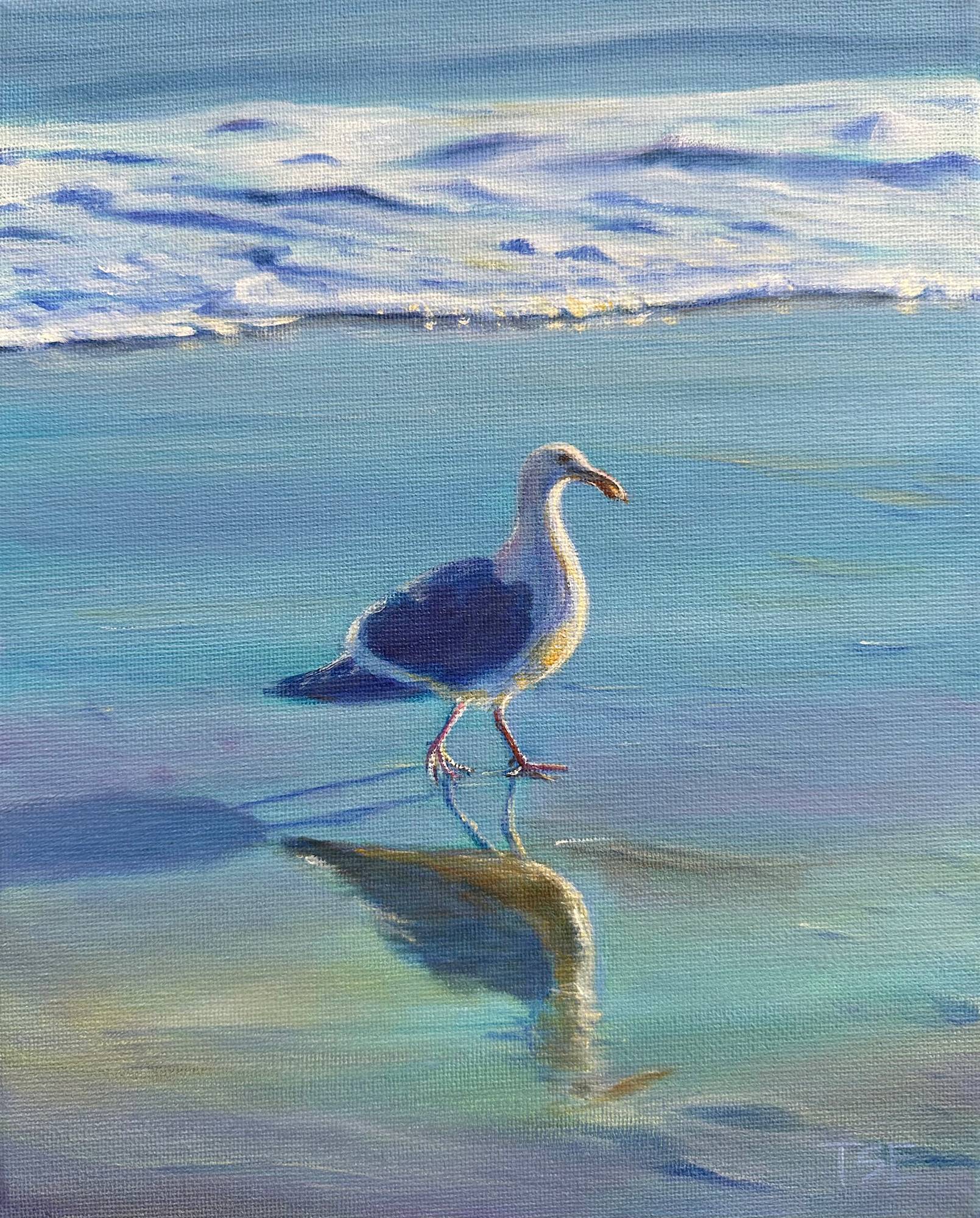 Took this photo at the Malibu beach one hot evening. The beautiful reflections on the sands inspired me to paint this painting.
