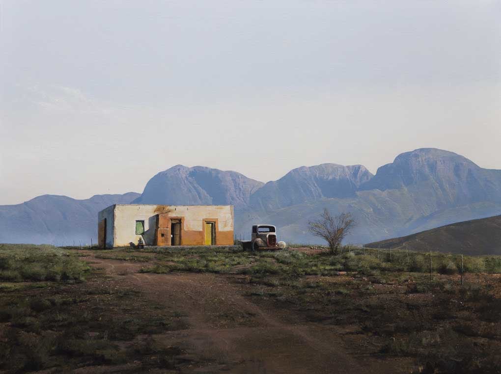 This old man enjoys the late afternoon sun on his verandah. A remote cottage near Calitzdorp on the R62 route in the Western Cape of South Africa