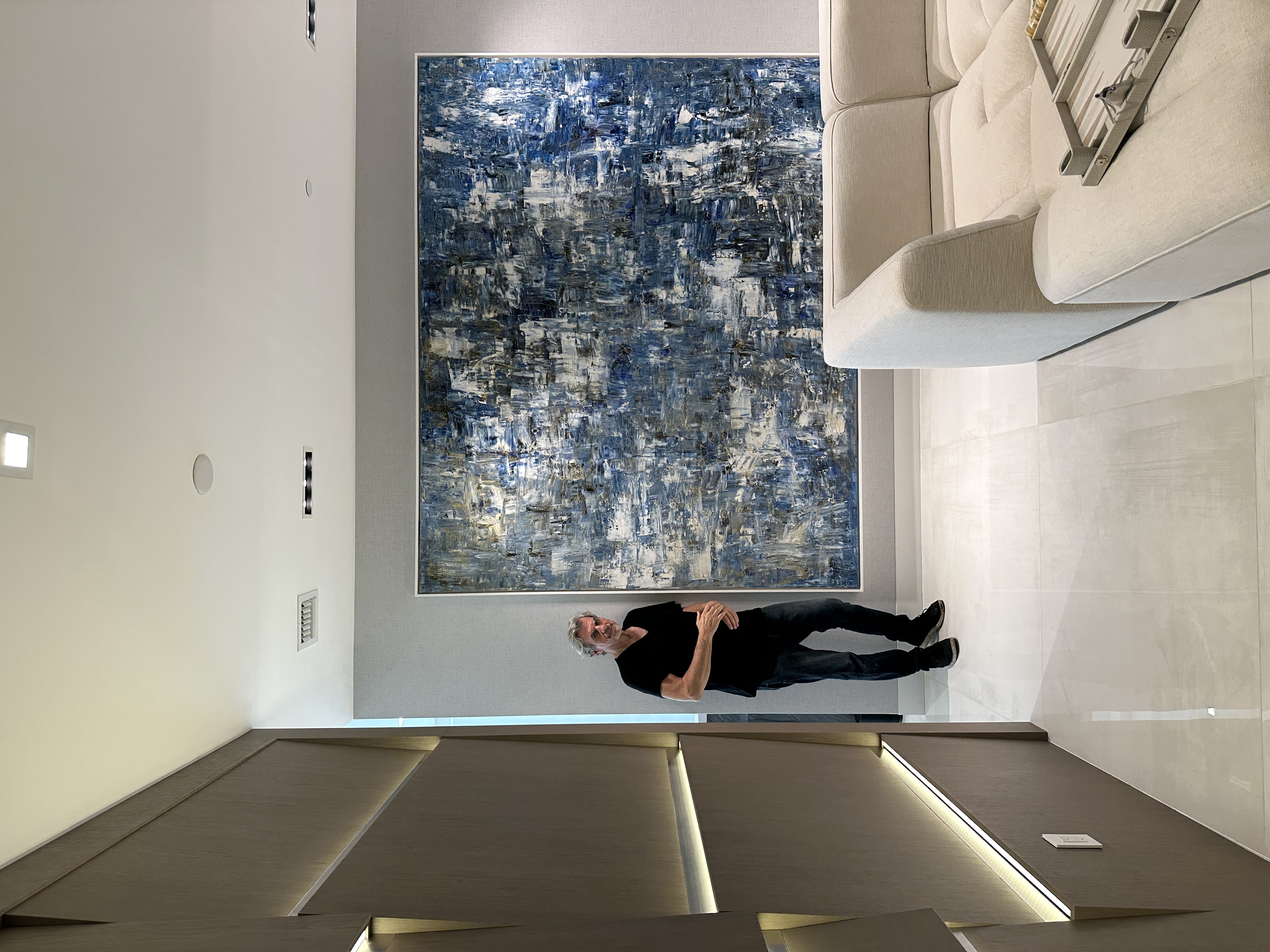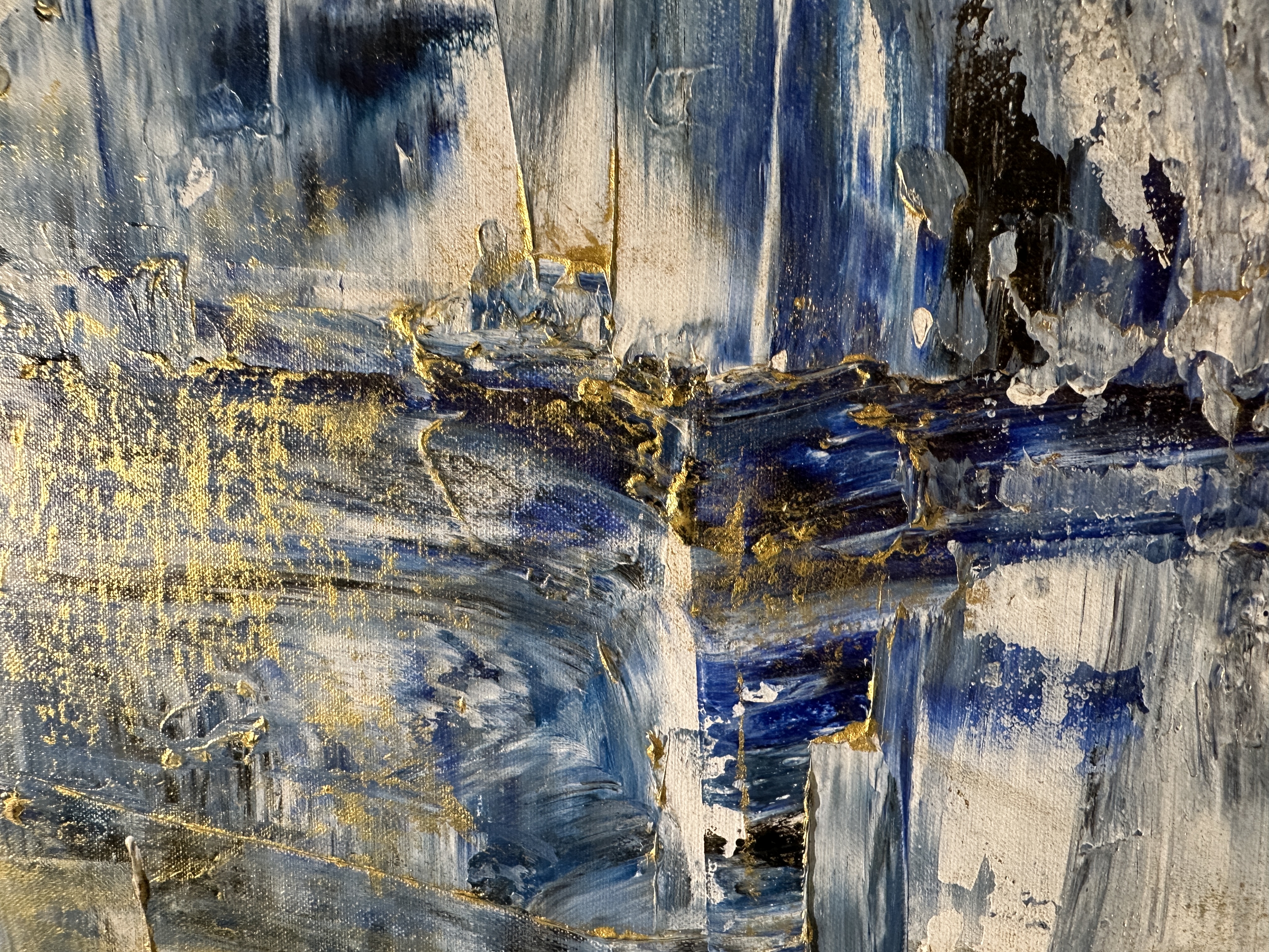 Nocturne in Blue and Gray layers bold strokes of deep blue, gray, and white, evoking the shifting motion of water and light. Its textured surface creates a sense of depth and energy, drawing the viewer into a dynamic yet contemplative atmosphere.