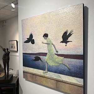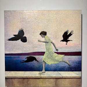- Mixed media on wood panel