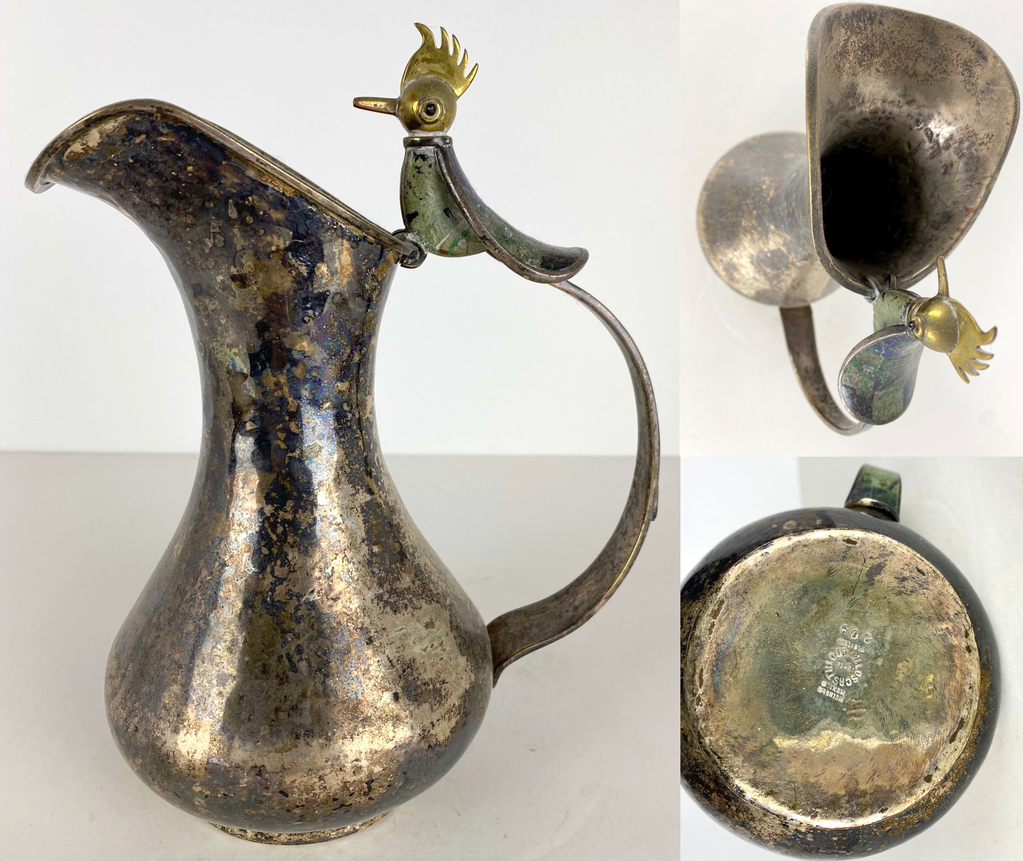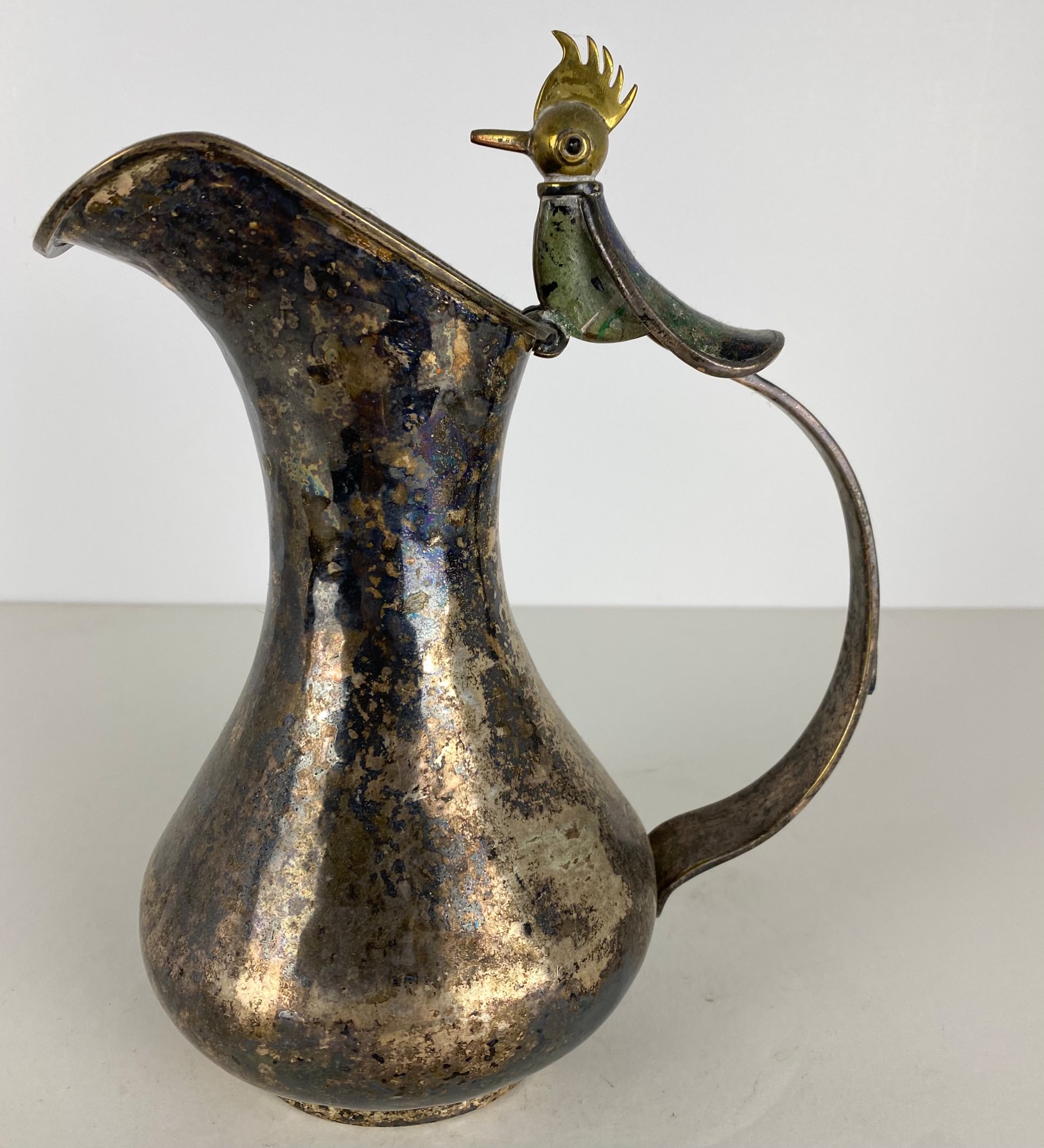 MessageDecorative Silver Mexican Water Jug with bird decoration