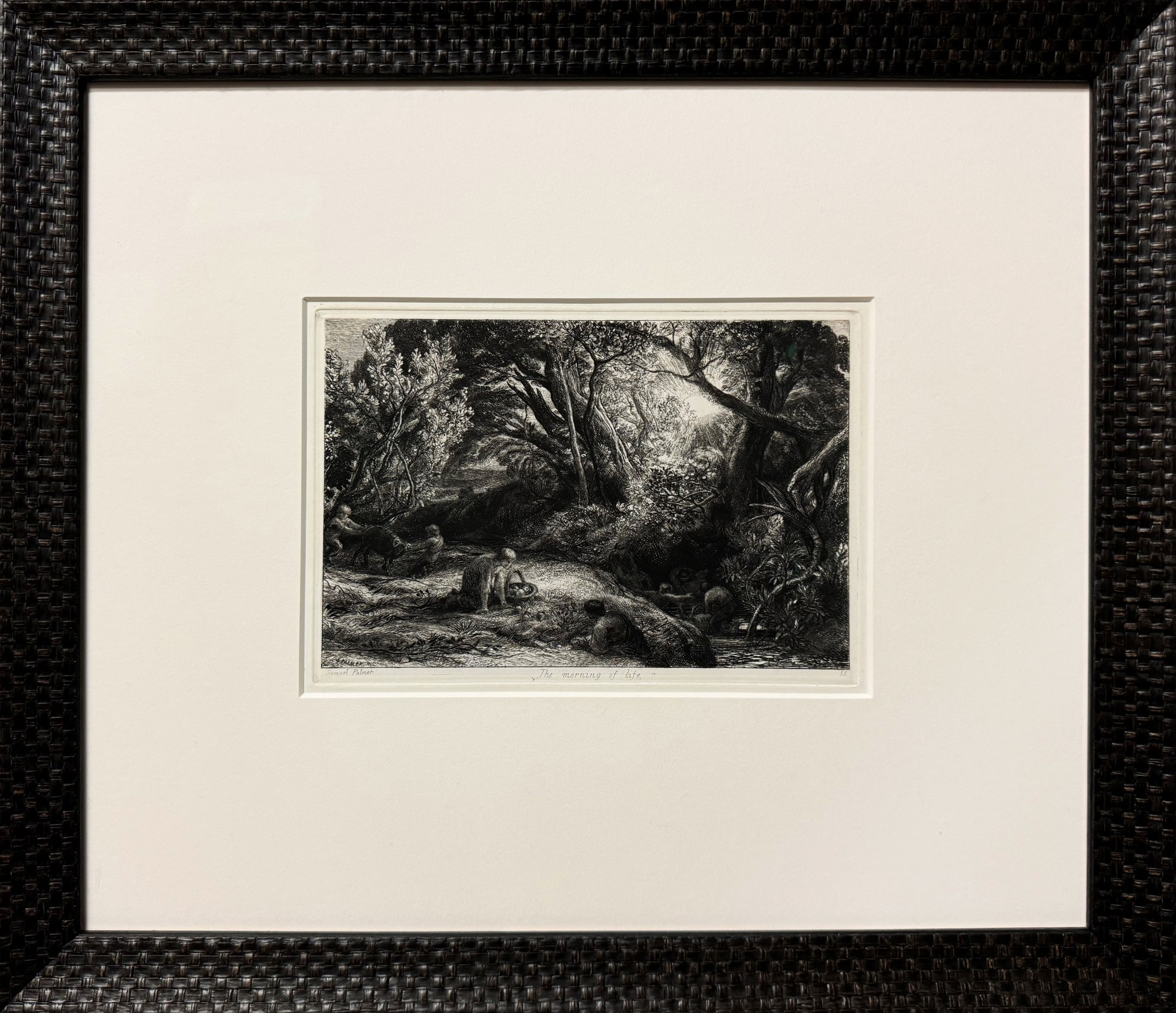 Samuel Palmer (1805-1881) was an English painter and etcher of visionary landscapes who was a disciple of William Blake. Palmer was a key figure in Romanticism in Britain and produced visionary pastoral paintings.