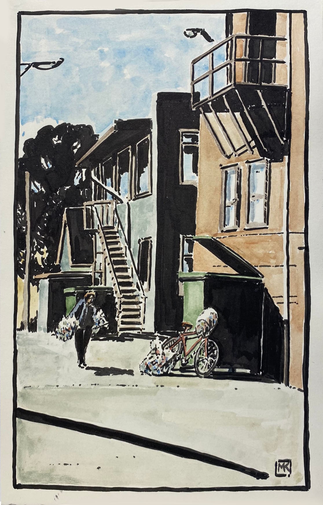 Ink and watercolour on paper