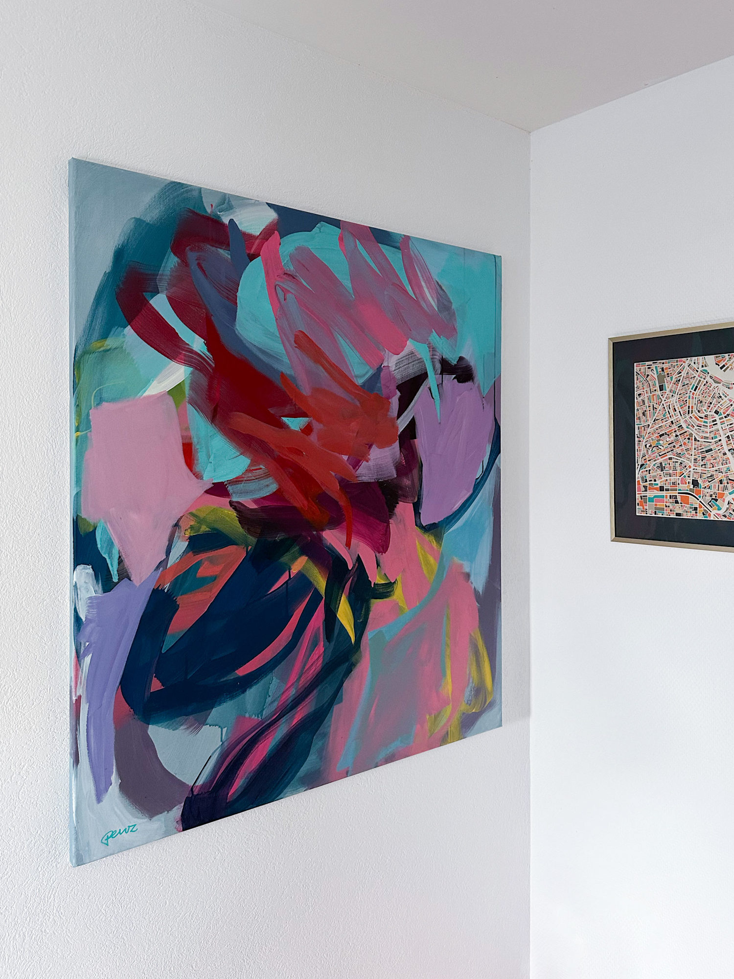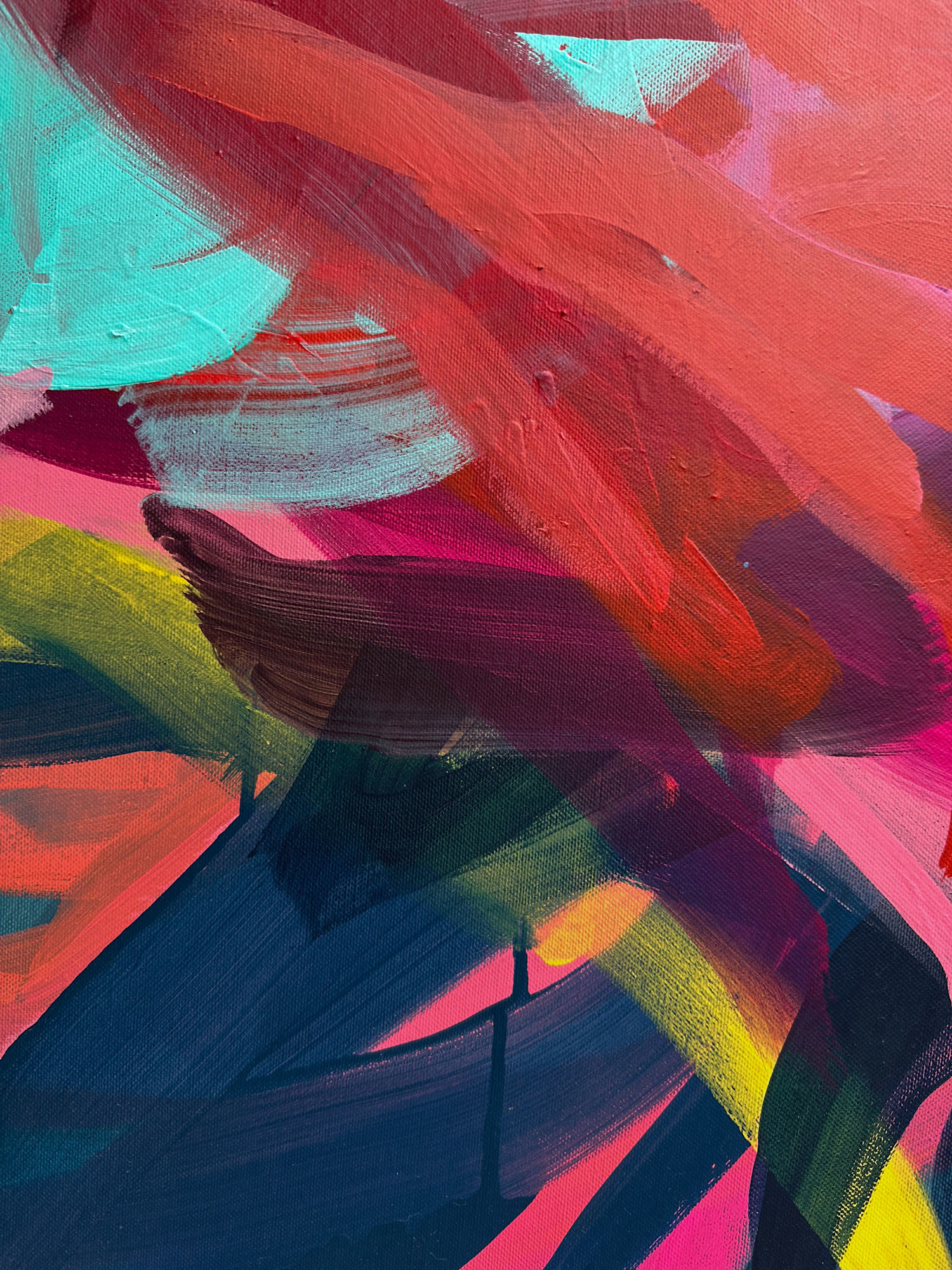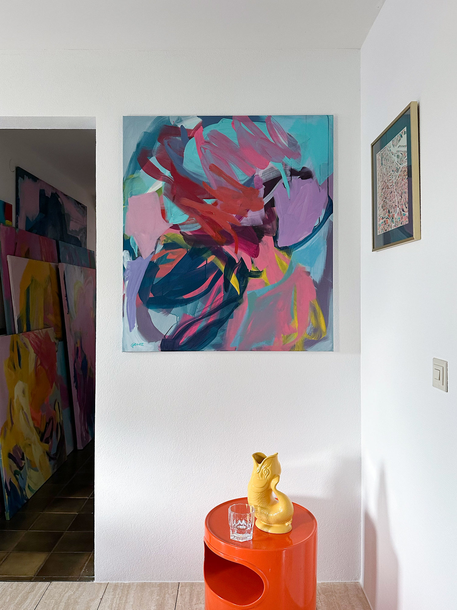 In the colors and forms I rediscover the strength of my foremothers, yet at the same time I paint my own story. It is a dance between past and future, in which I shape my present. Here, in this garden of my female ancestors, I plant the seeds of my goals and water them with the essence of my being.