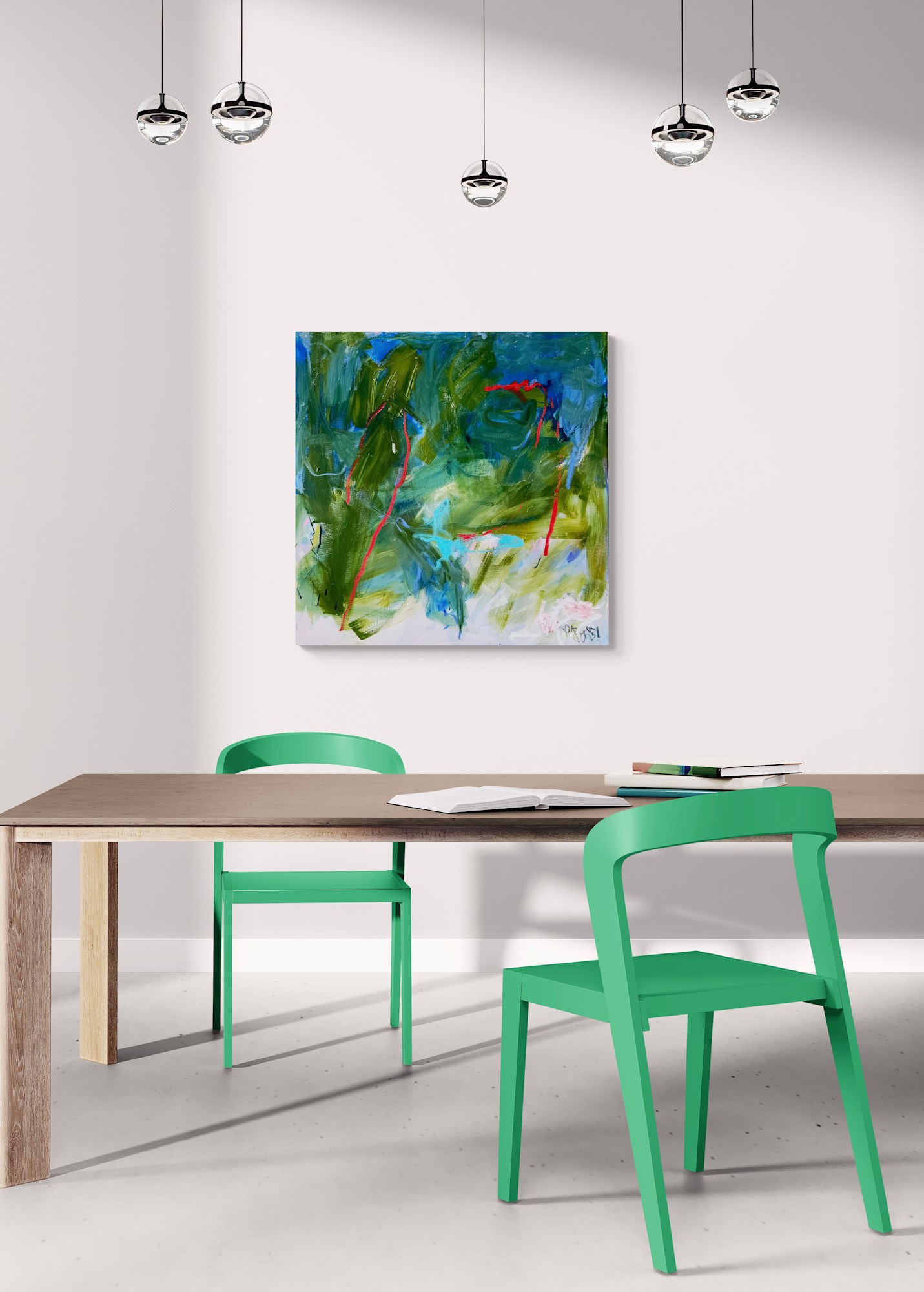 This painting is not just about what is visible but about what is felt—the invisible current that flows between two beings, charged with possibilities yet to unfold. It invites the viewer to linger in this moment of suspended energy, to feel the intensity of the connection and the beauty of what remains unsaid. Through its bold simplicity and evocative colors, the work captures a powerful and universal aspect of human relationships: the electric pull of connection that defies easy resolution.