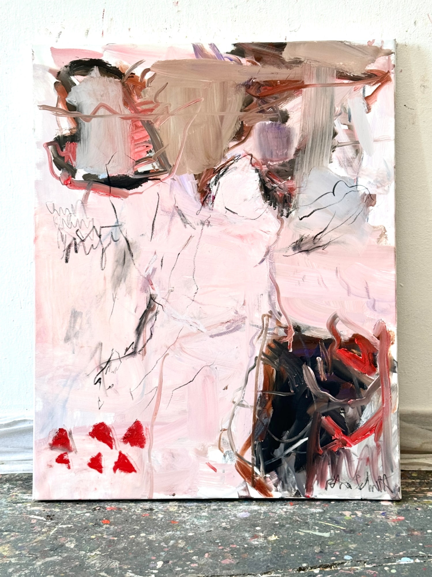 In this painting, with its soft rosé and pink hues, an angel is faintly visible. Usually, angels remain hidden, unseen by us. This artwork serves as a reminder that angels exist in our lives, often unnoticed.