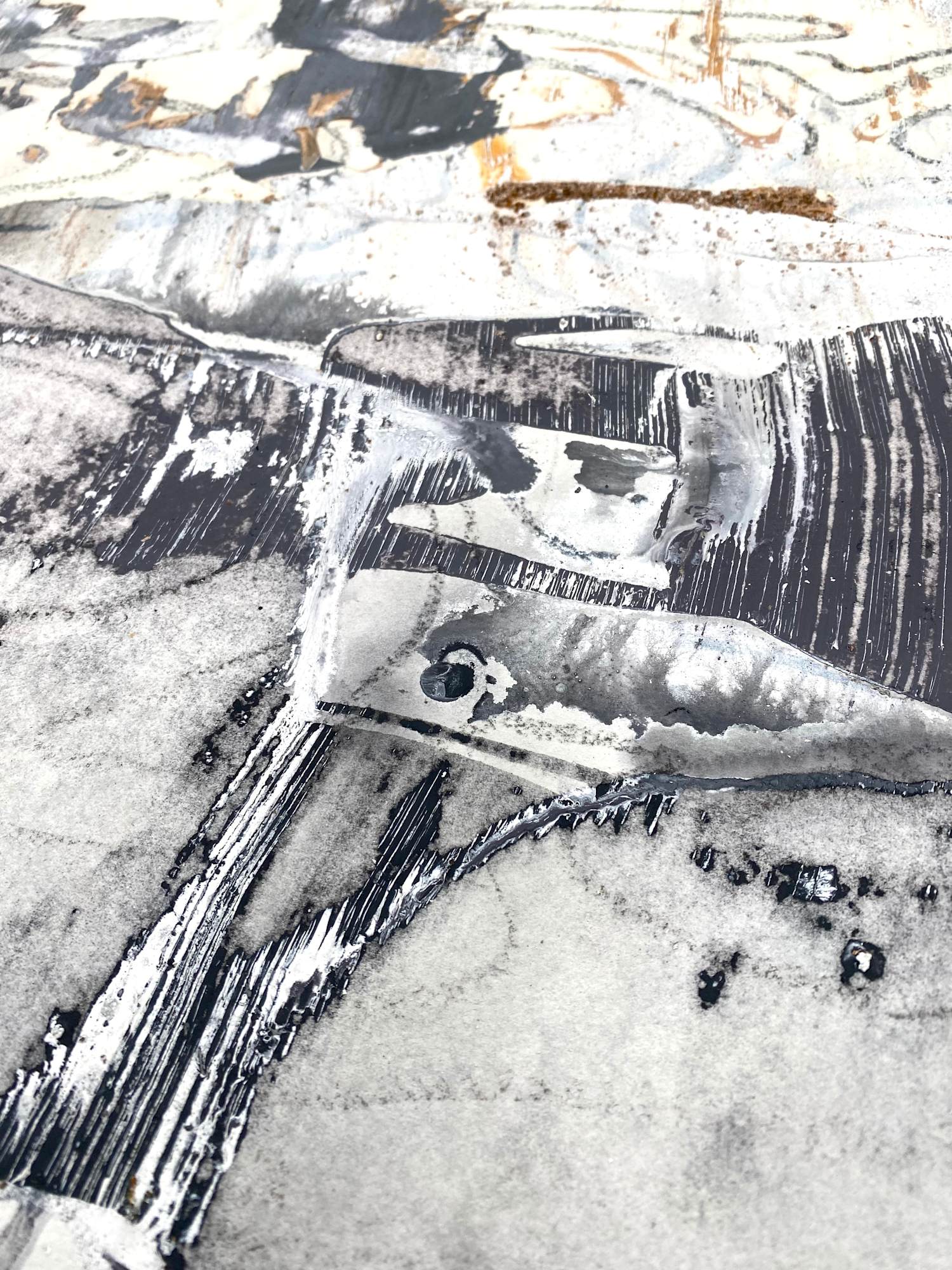Ka Lae soil, ash, charcoal and acrylic on paper