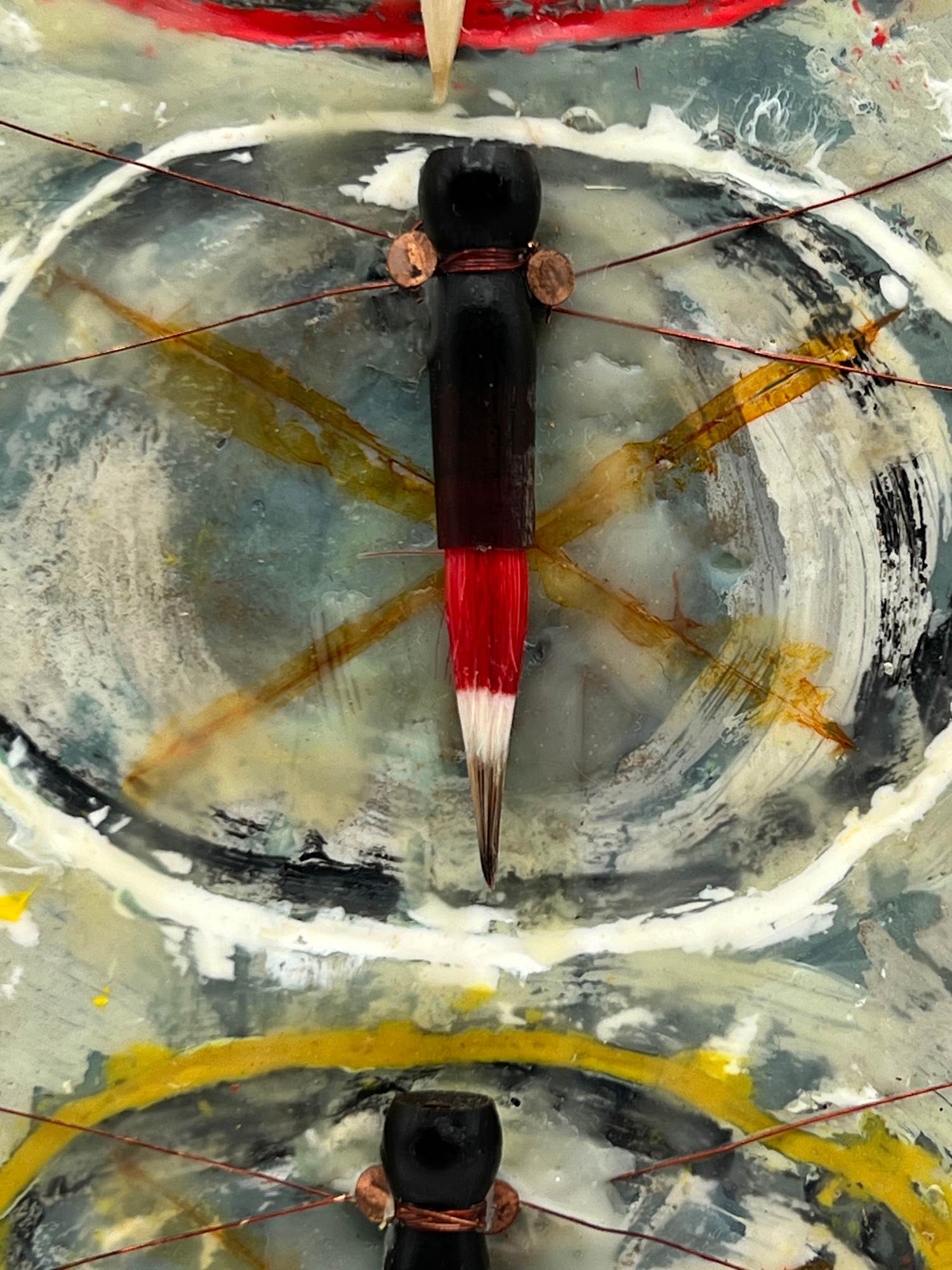 - Subject Matter: Sealed hardcover book with brushes, wire and encaustic
