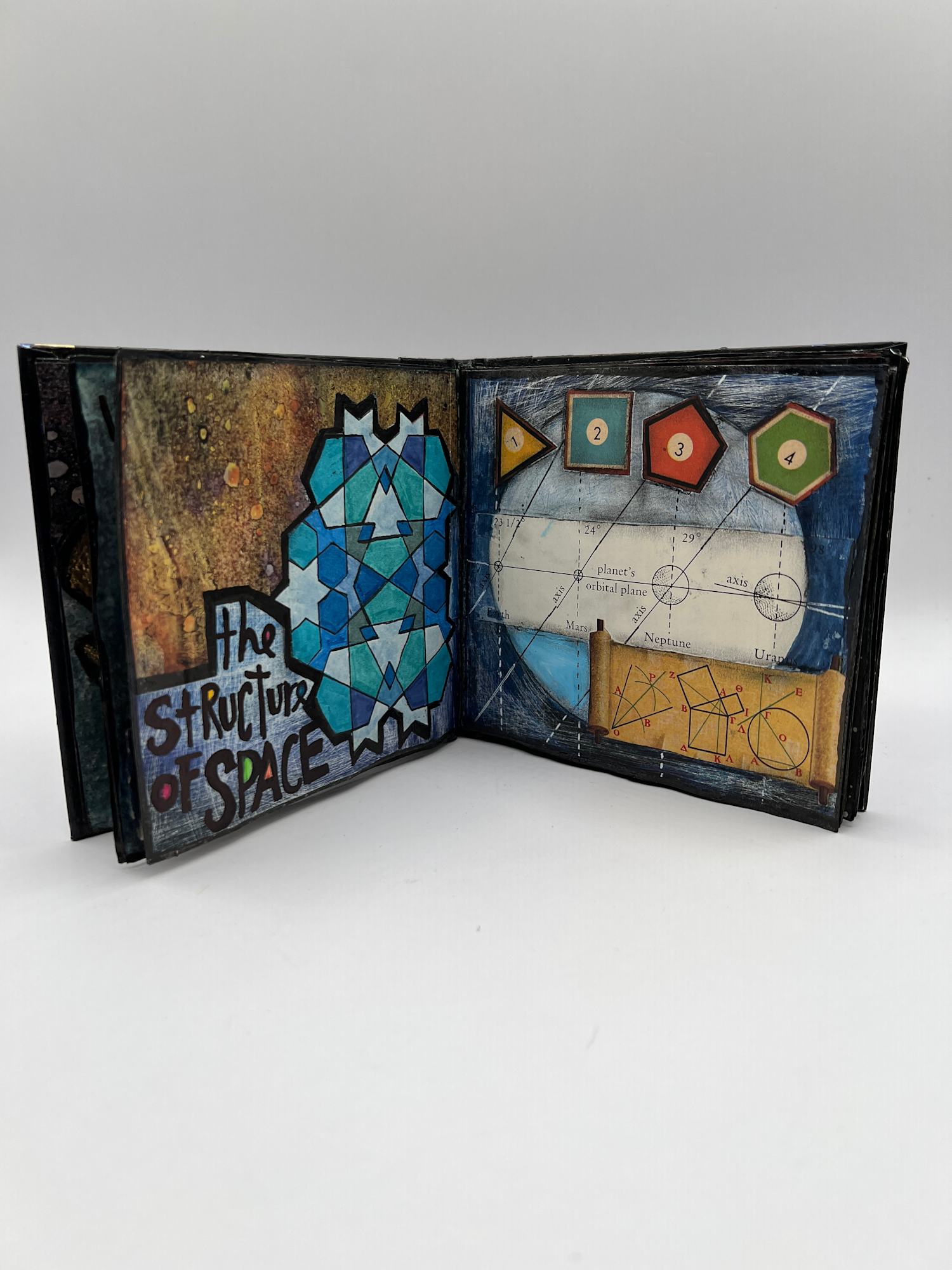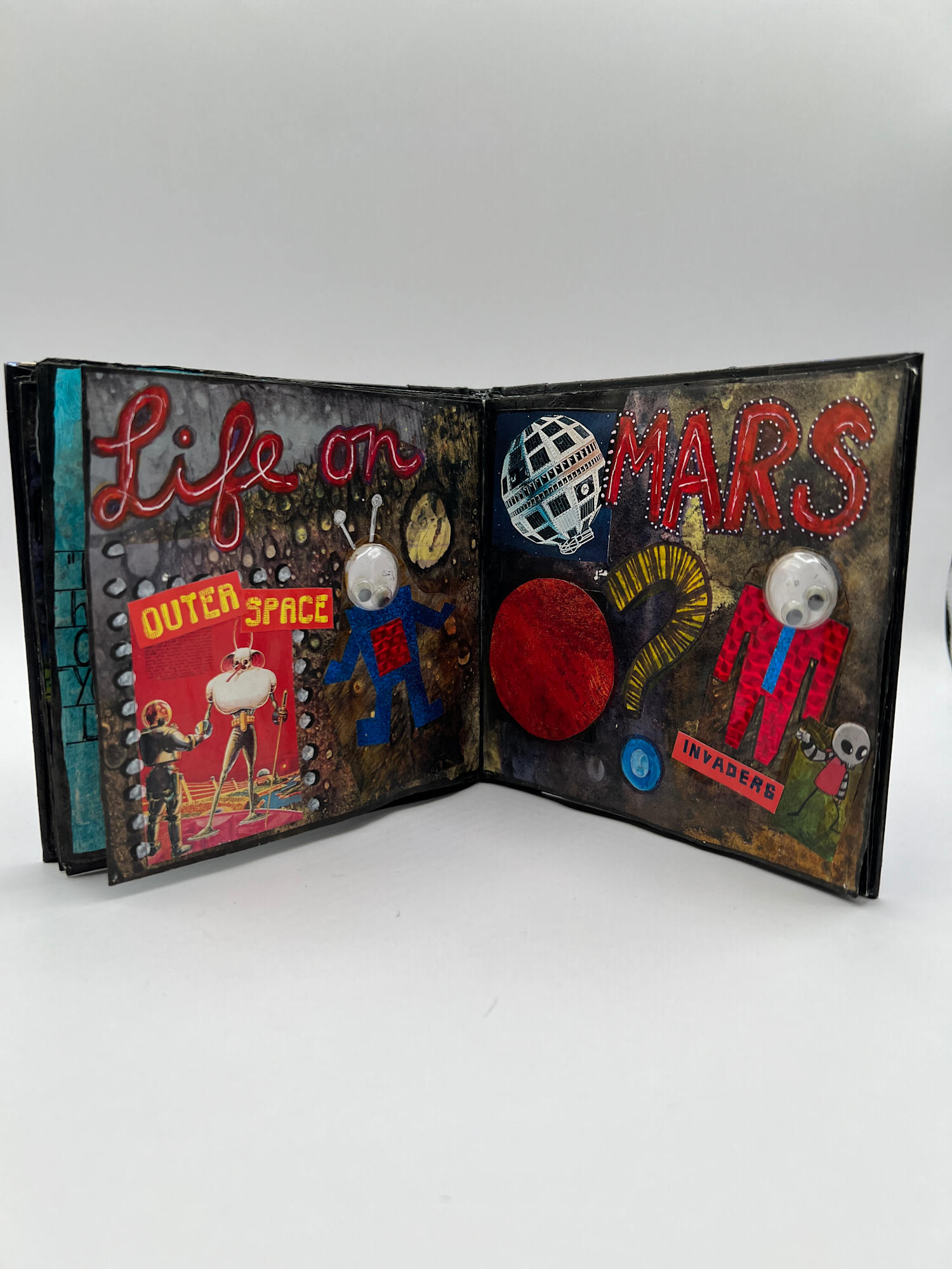 Over 20 pages of painted, drawn and collage mixed media images with original text
