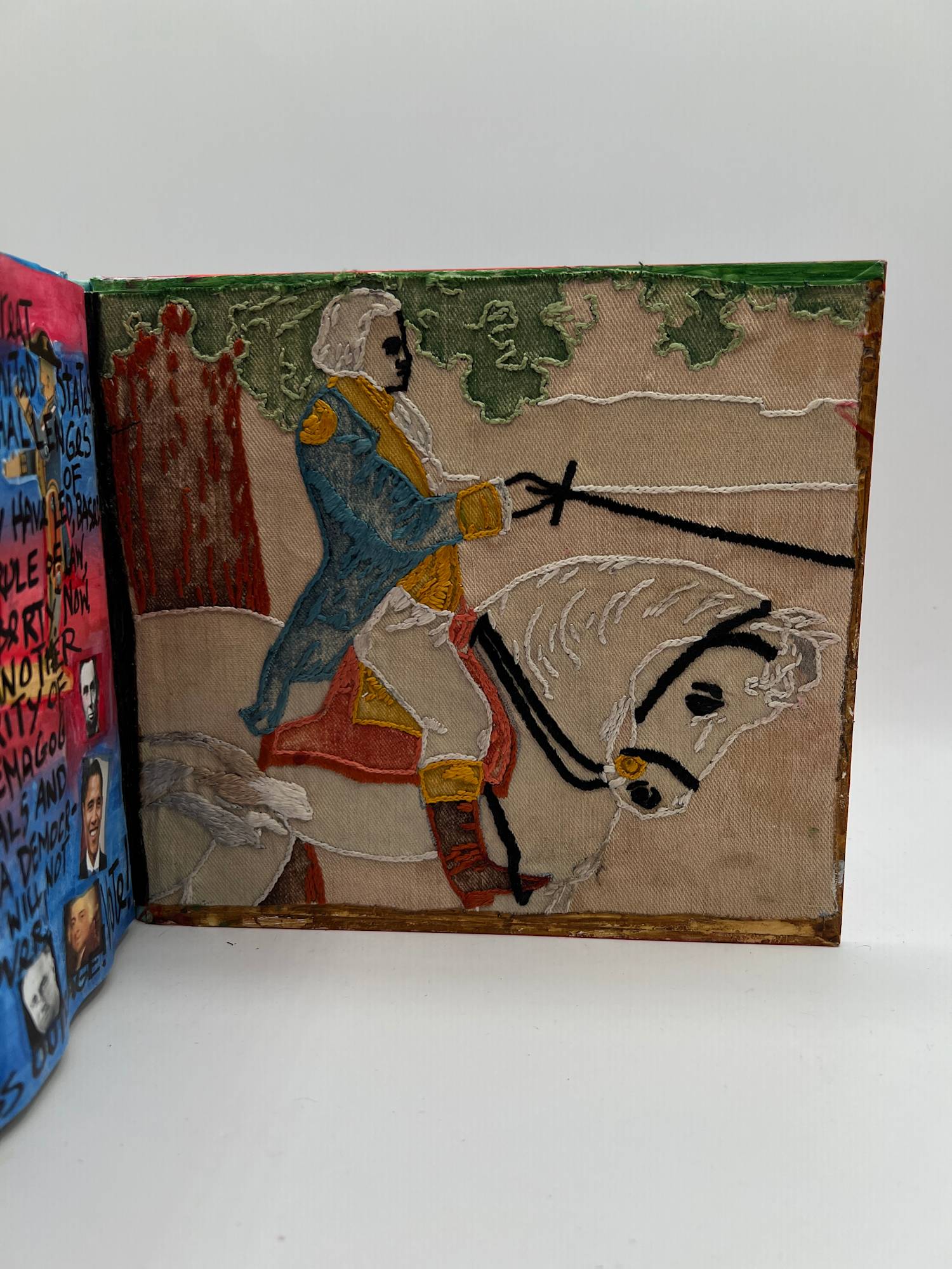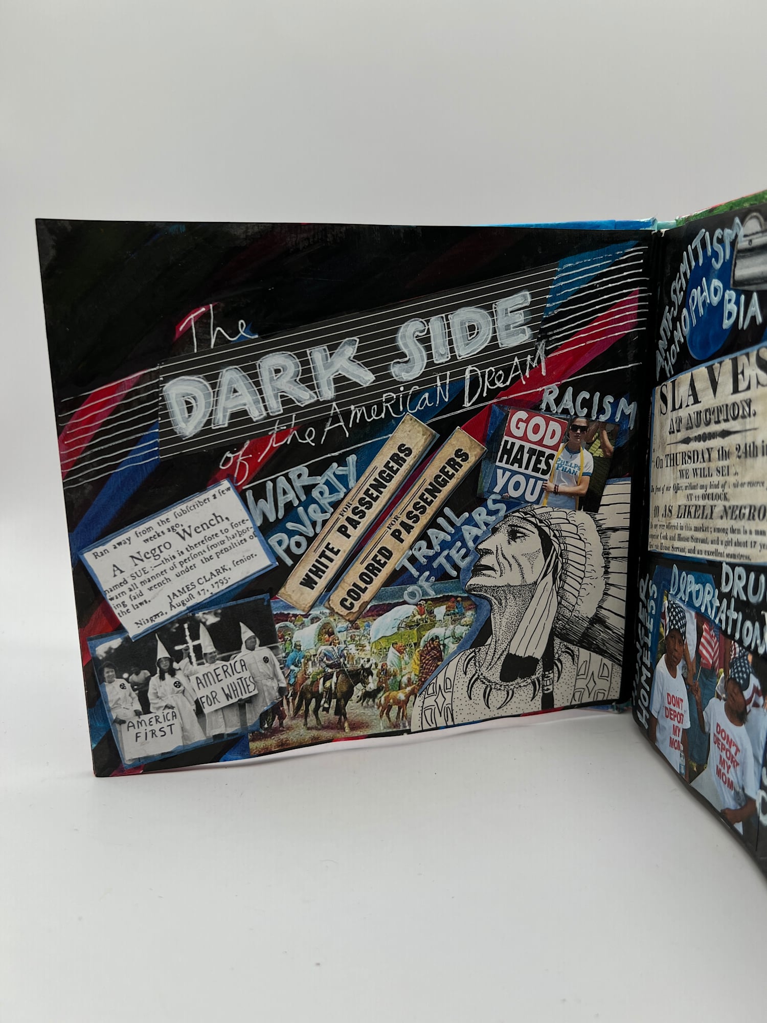 The book covers a range of ideas about being an American at a time of great challenge, using images, text, lyrics and mixed materials.