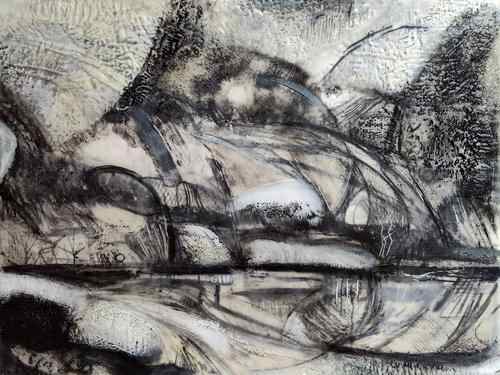 This encaustic wax piece of Lake Ontario storm is many-layered with graphite and ink. My goal is to draw between--and carve into--layers of clear wax medium to build a dimensional drawing with lines that go in, on and under. Seeking a dynamic drawing experience in wax.