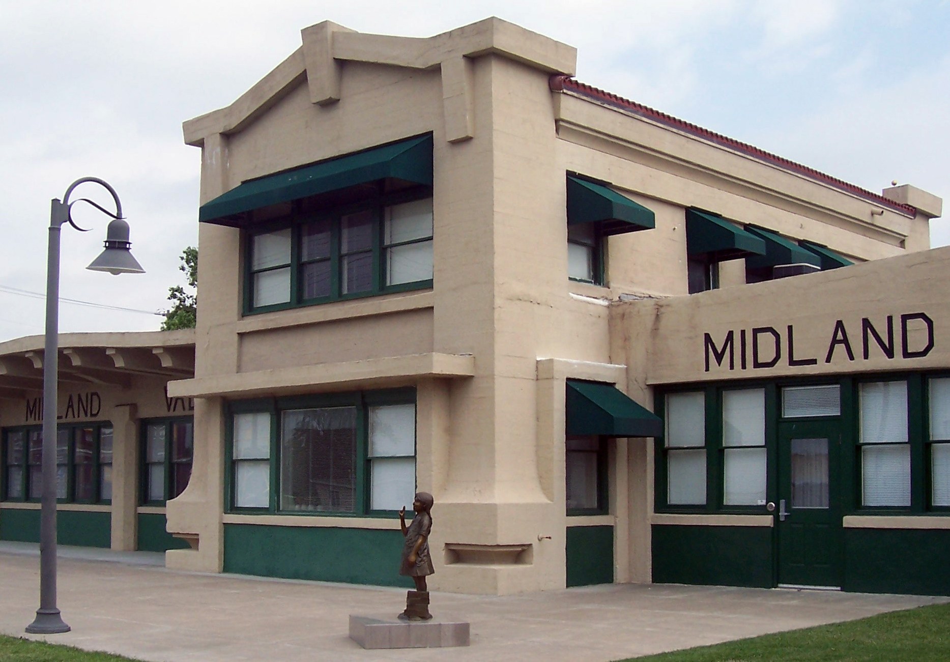 Wearing the Junior dress that Girl Scouts wore in the 1960s and 1970s she is pledging the Girl Scout Promise. This sculpture is placed at the Three Rivers Museum in Muskogee, OK.