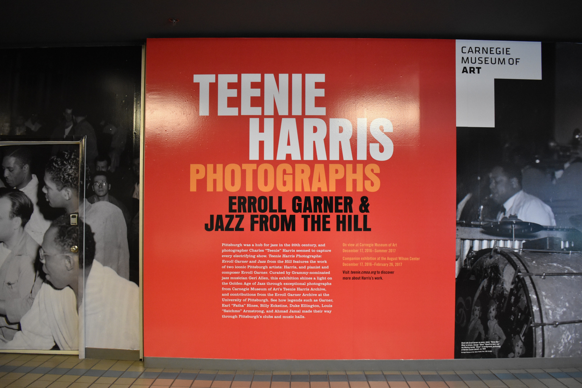 Celebrate Pittsburgh Neighborhoods is a display showing passengers images from the jazz scene in Pittsburgh during the 20th century. The display utilizes famous photographer “Teenie” Harris’ photographs of jazz halls in Pittsburgh and features images Harris took of iconic jazz composer Erroll Garner.