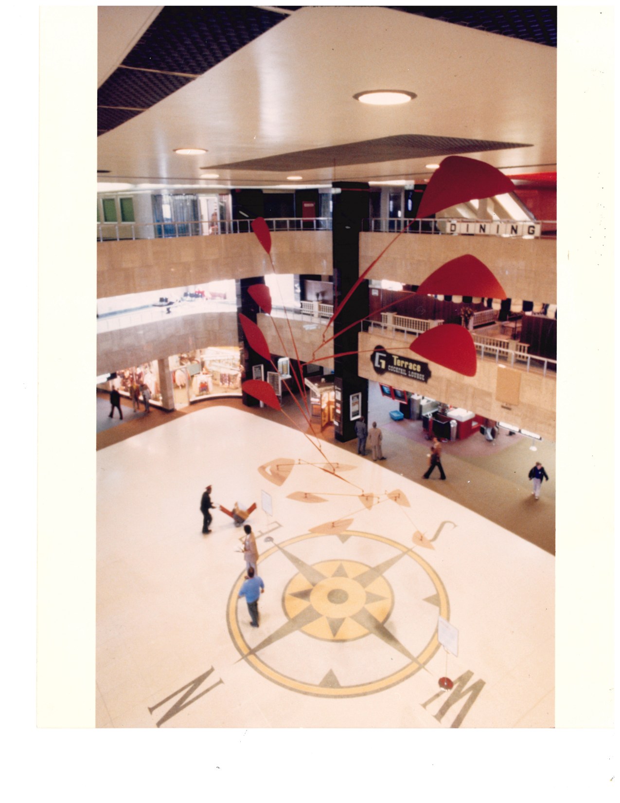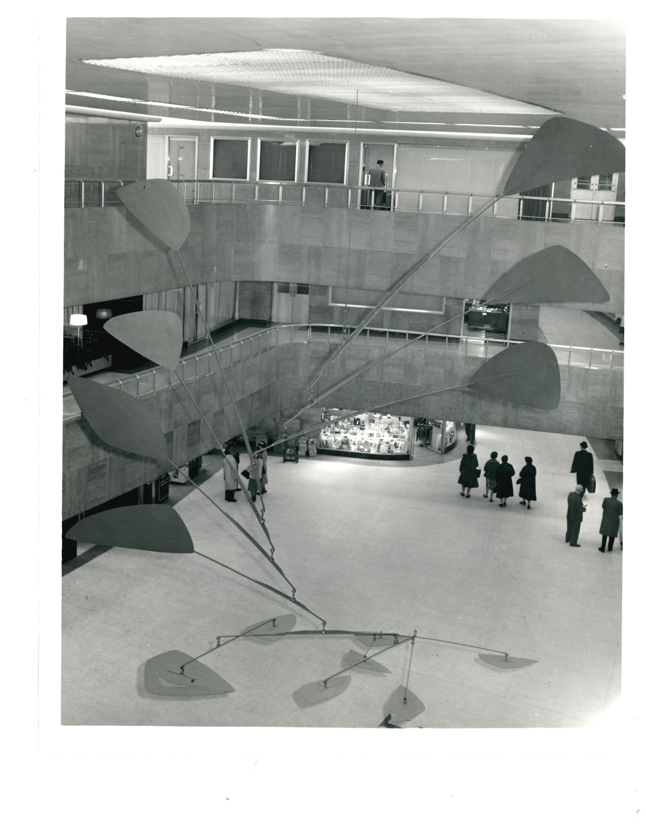 One of the most iconic pieces belonging to PIT is Pittsburgh, a mobile that was created by Alexander Calder in 1958. The piece originally hung in the 1952 airport but has traveled to exhibitions around the world in institutions such as the Guggenheim and Carnegie Museum of Art. It is considered an important and rare work by Calder due to its monumental size.