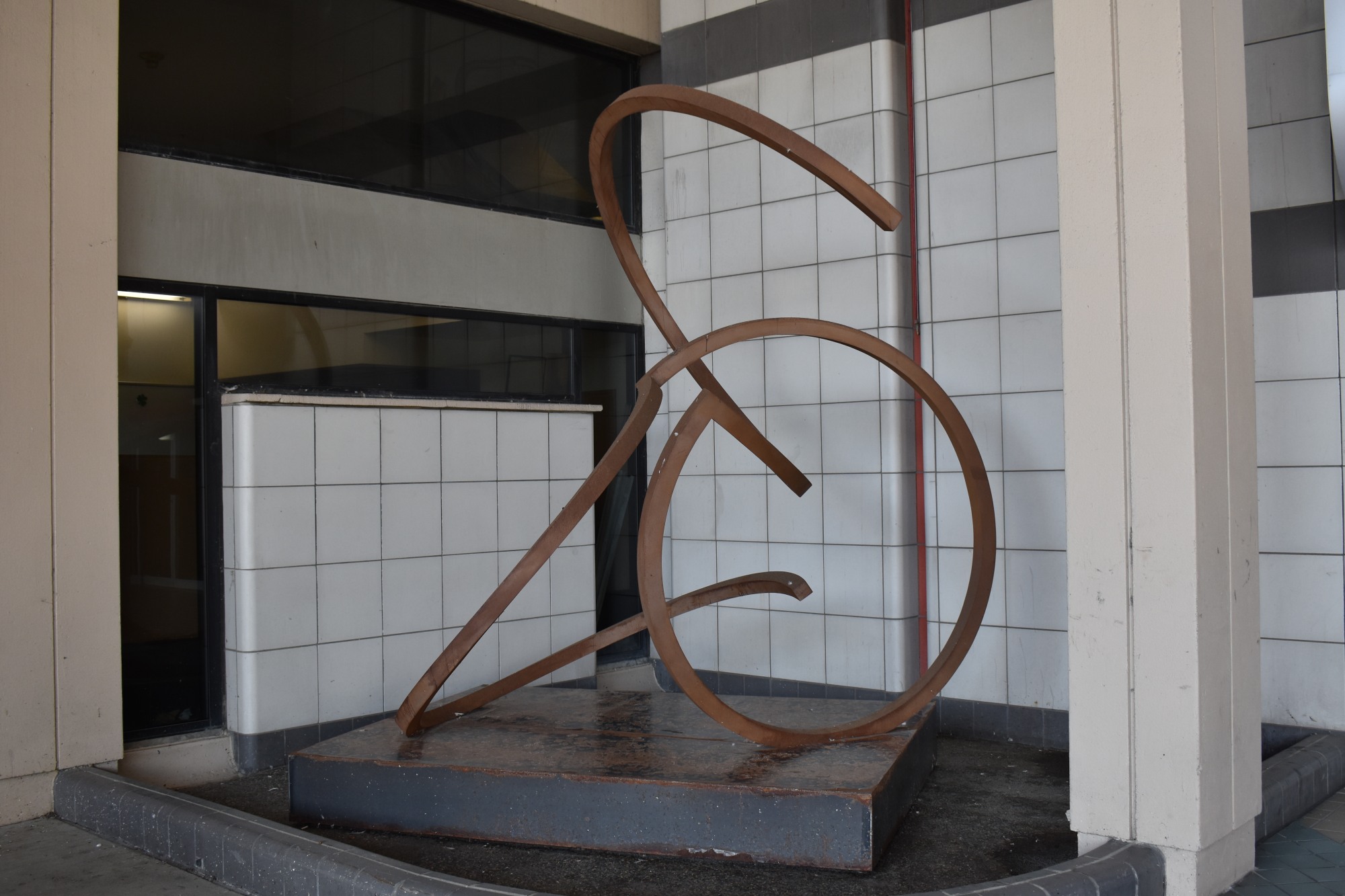 Three Rings was created in 2016 by Dee Briggs. Before finding its place at the airport, the sculpture was in New York City. The work was loaned to the Pittsburgh International Airport in 2018 and is currently located at Door #6 on the outside of the Baggage Claim Level of the Landside Terminal.