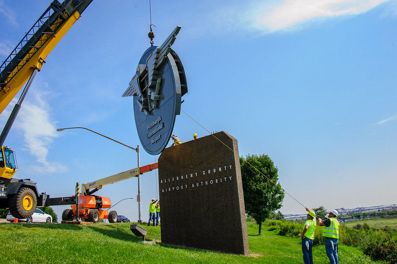 Located at the airport entrance, this work consists of two eagle signs that welcome all visitors. Originally located at the 1952 airport, the eagles were relocated to the new terminal in 1991 to preserve the history of the Pittsburgh International Airport.