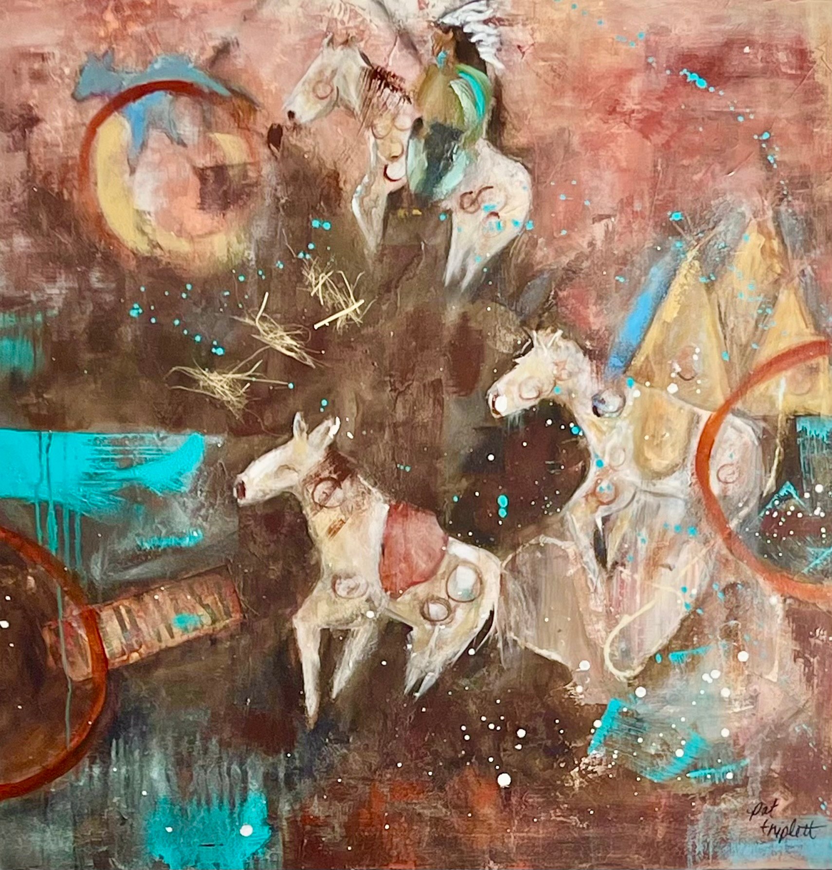 Fun mixed media figurative abstract using rich earthy colors and hues.