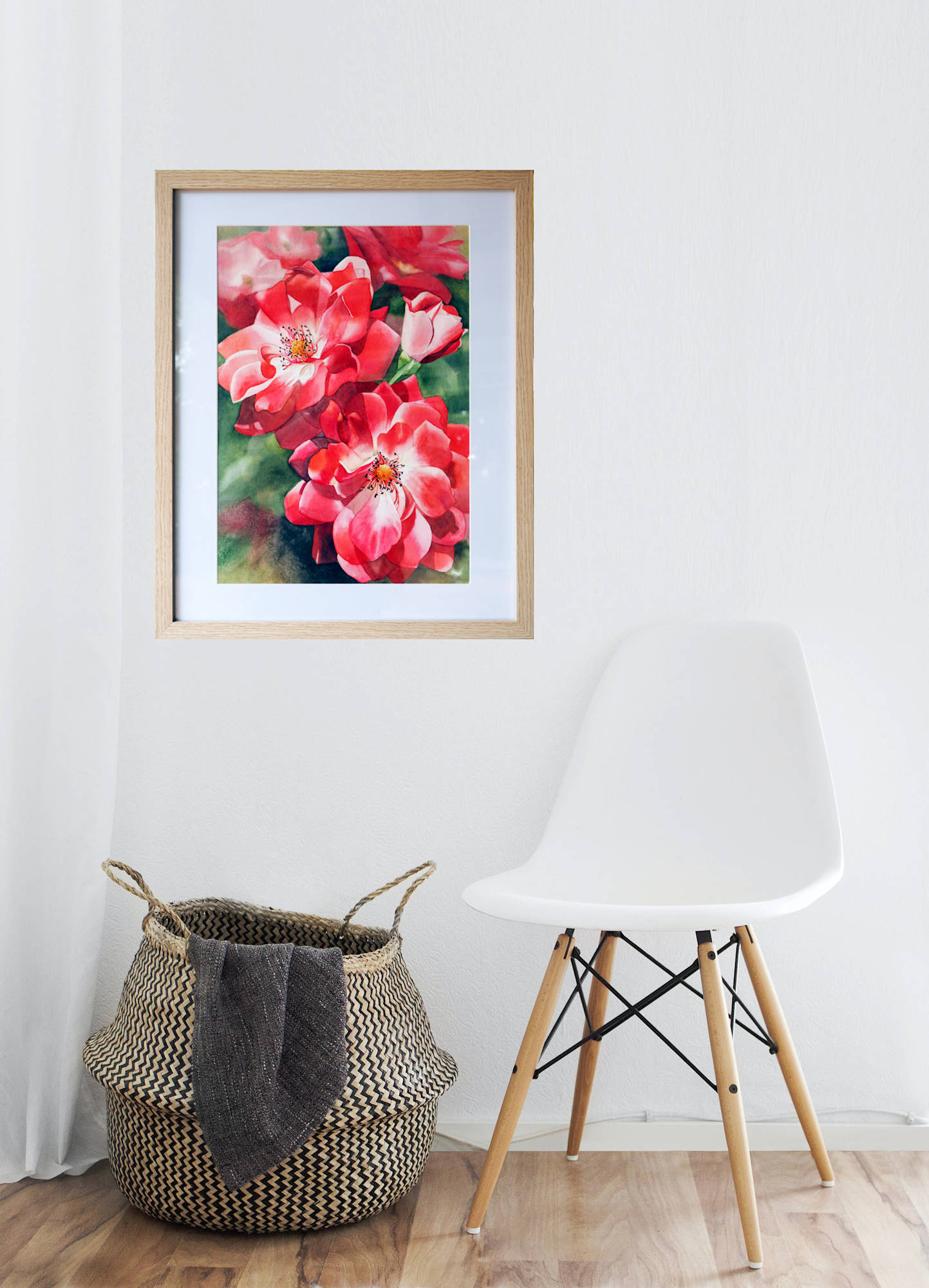 A prompt for an online challenge with the theme "magenta" gave me an excuse to use the amazing reference image I had on file to create this striking painting. I always love photographing and painting roses. It all started because I actually found them really difficult as a subject - something I became determined to overcome. Now they appear regularly in my practice. This particular one has a lovely open form that shows the stamens, and the colour is a wonderful bold colour that would bring a pop to any space.