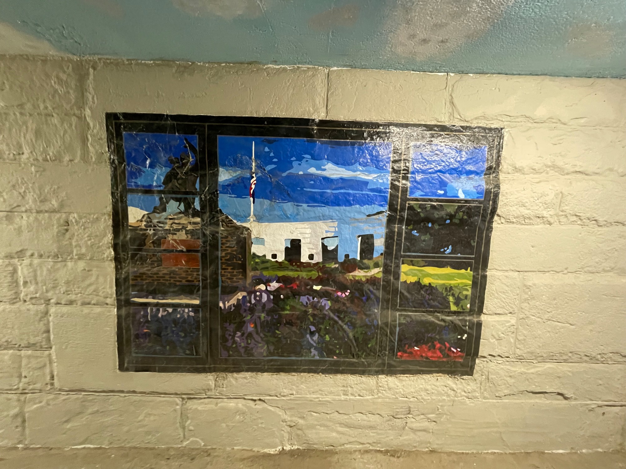The other side of the mural will consist of five window views of Dundee landmarks. The windows were painted by UNO students as part of the Days of Community Service in October. It took longer than expected to finish the windows so they will be installed in the spring when the weather gets warmer.