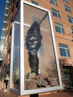 "Frankie's Pain" was created using the discarded material from the old viaduct linking downtown to Union Station, transforming it into something far different than its original intent. Is it simultaneously an encased cocoon protecting beauty and allowing it to emerge and an entombed sarcophagus holding a life long departed. The sculpture was installed in the Gene Leahy Mall in 2004 as part of the "Wind & Water" Sculpture Project (2002-05) created in conjunction with the Omaha Summer Arts Festival, and purchased by RDG Architects for donation to the city for permanent display. It was moved from that location when renovations to the mall began in 2019, and placed in storage.