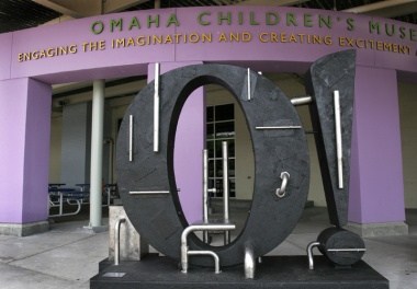 Donated by Carol Gendler. Jamie Burmeister transformed this O! into an interactive sound sculpture by attaching tuned chimes and bars into an engaging visual arrangement. The chimes play by being struck by doorbell solenoids, which are controlled by a micro-controller, or small programmable computer. When the viewer sits on the chair within the O!, pieces of these songs about Omaha play "Omaha" (Fritze Al Carlson); "I Want to Grow with Growing Omaha"(Albert Adair); Omaha Blues(Big Joe Williams);"Omaha" (Counting Crows); "Omaha Stylee"(311);and "Omaha Flash" (Johnny Otis).