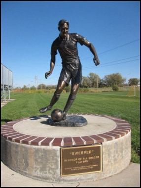 Edward and Georgena Eggleston, former residents of Norfolk, Nebraska and long associated with the sport of soccer, donated the sculpture to the City of Omaha to display at the popular Tranquility Park Soccer fields. The goal of the statue was to encourage wider interest in art among visitors to the park.