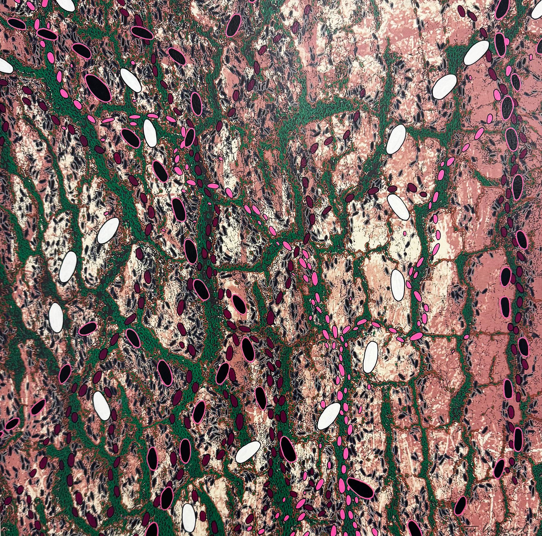 - Photo silk-screen, mixed media on wood panel