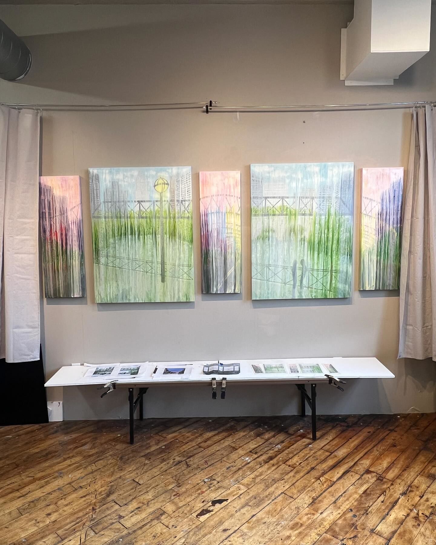 Two 30x40in panels & Three 12x36 (9 ft wide w variable spacing of 5 panels)