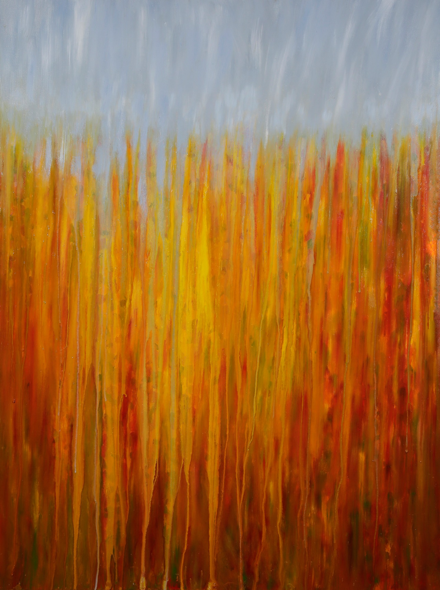 Rainy Moment 01 is inspired by the brilliant warm hues of a New England fall day. This whole series was initiated because of seeking to capture the beauty of warm autumn colors through a rainy window.