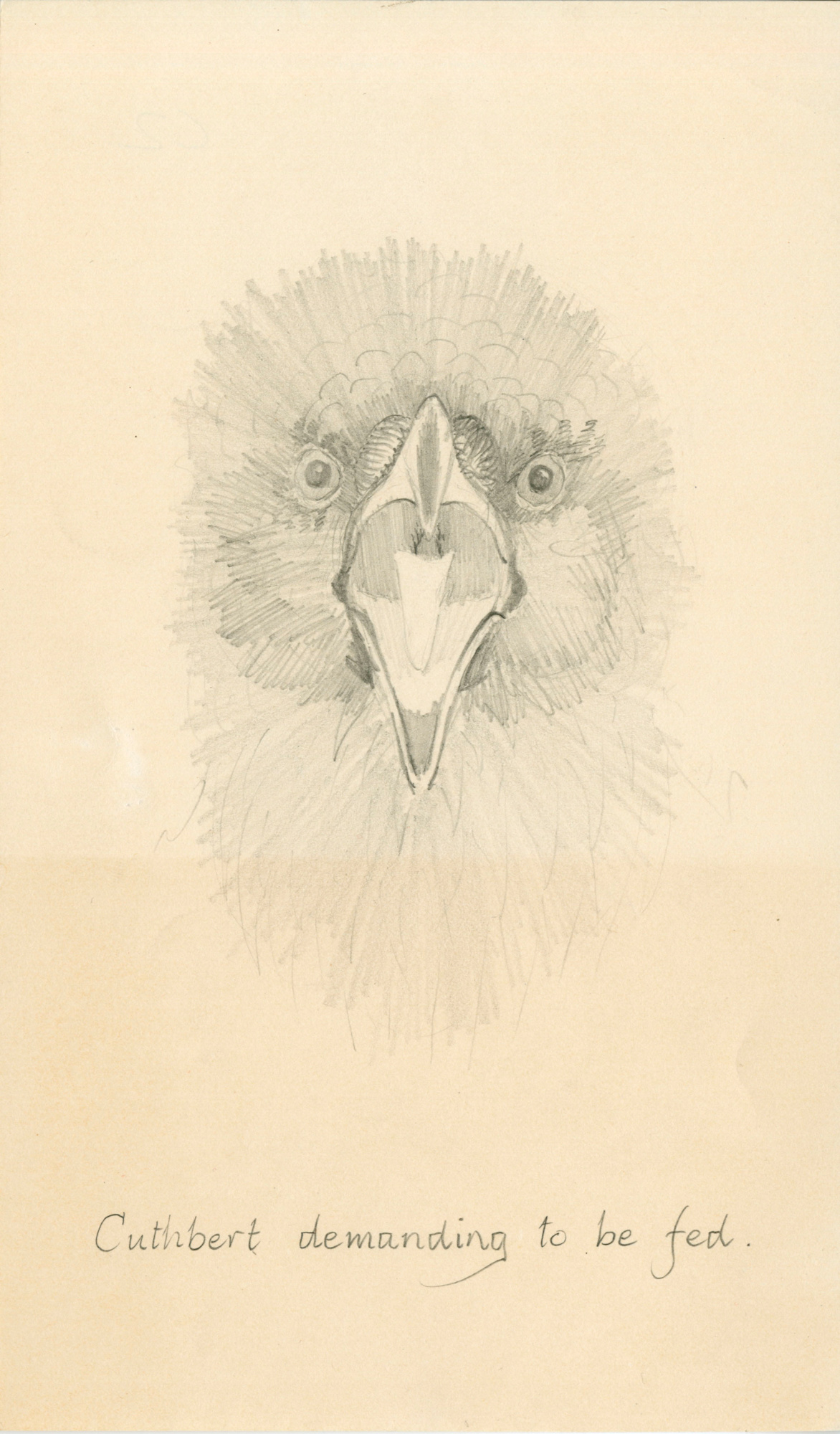 Cuthbert. An African Pied Crow who used to water-ski across the kitchen floor attached by his beak to my cat’s tail. Cuthbert came as the runt of a brood from a nest on the railway line. He learnt how to brew an Earl Grey tea bag, squiggle with a pencil, call the cats in from the garden and then imitate everybody’s laughter when they came running. He had a highly evolved sense of humour and was always good company to me on the windmill. Cuthbert had a very insistent and raucous begging call, once fed he gave little 'Bill & Ben' appreciative num num..