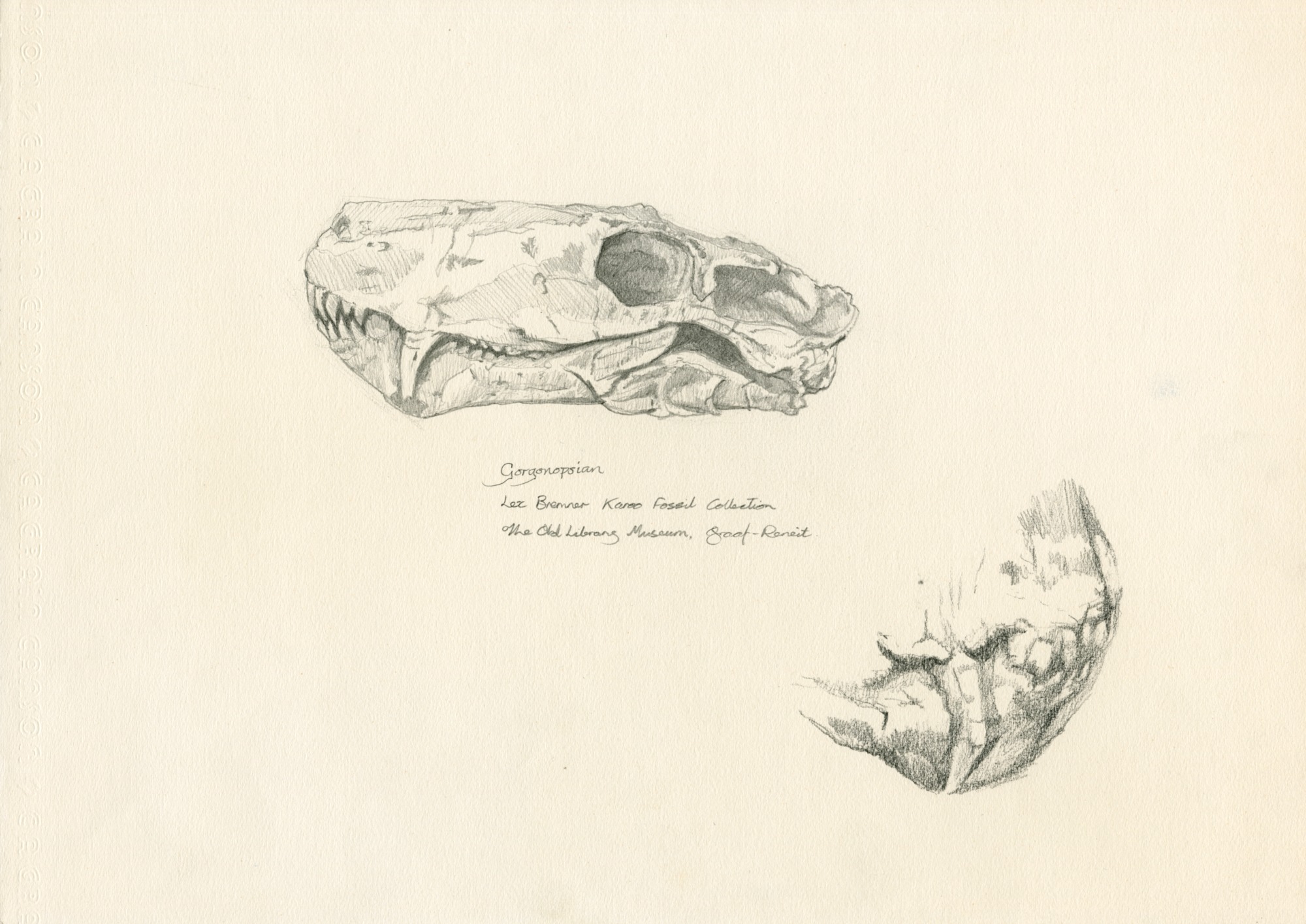 Gorgonopsian. Lex Bremner Fossil Collection, The Old Library Museum, Graaf-Reneit.