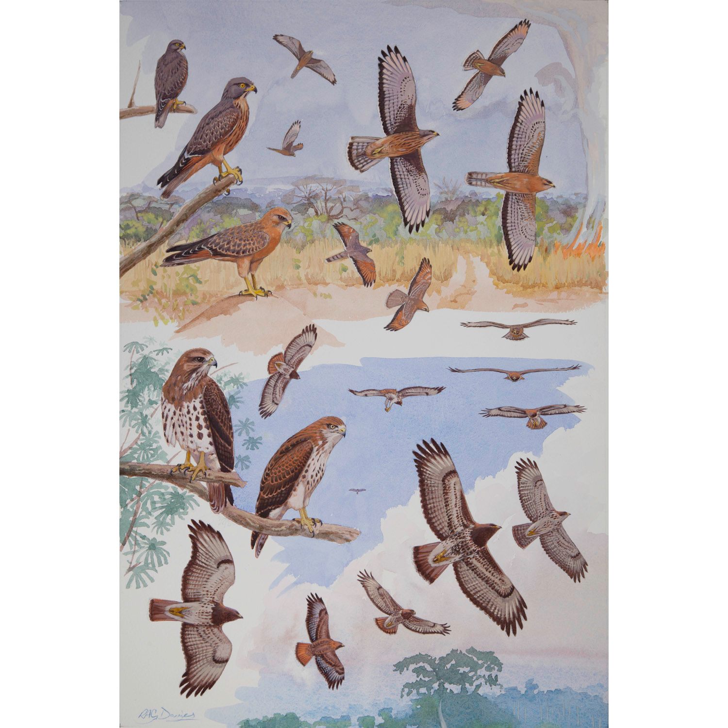 Grasshopper and Red-necked Buzzards, African raptors plate no. 28