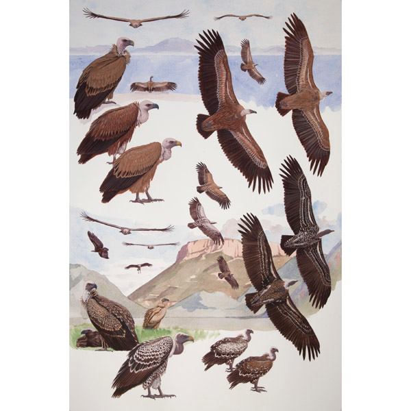 Griffon and Ruppell's Vultures, African raptors plate no. 9