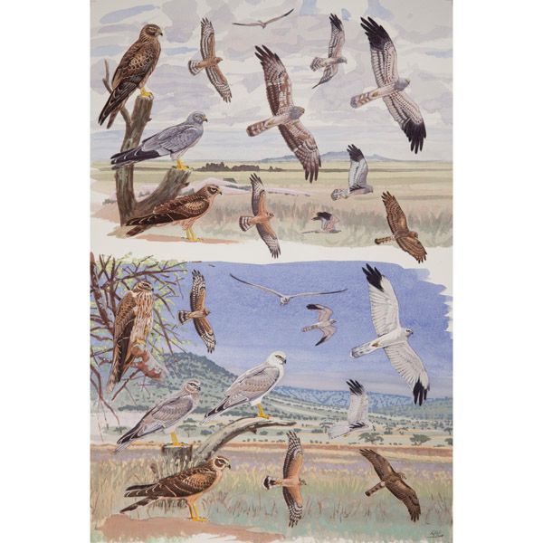 Montagu's and Pallid Harriers, African raptors plate no. 15
