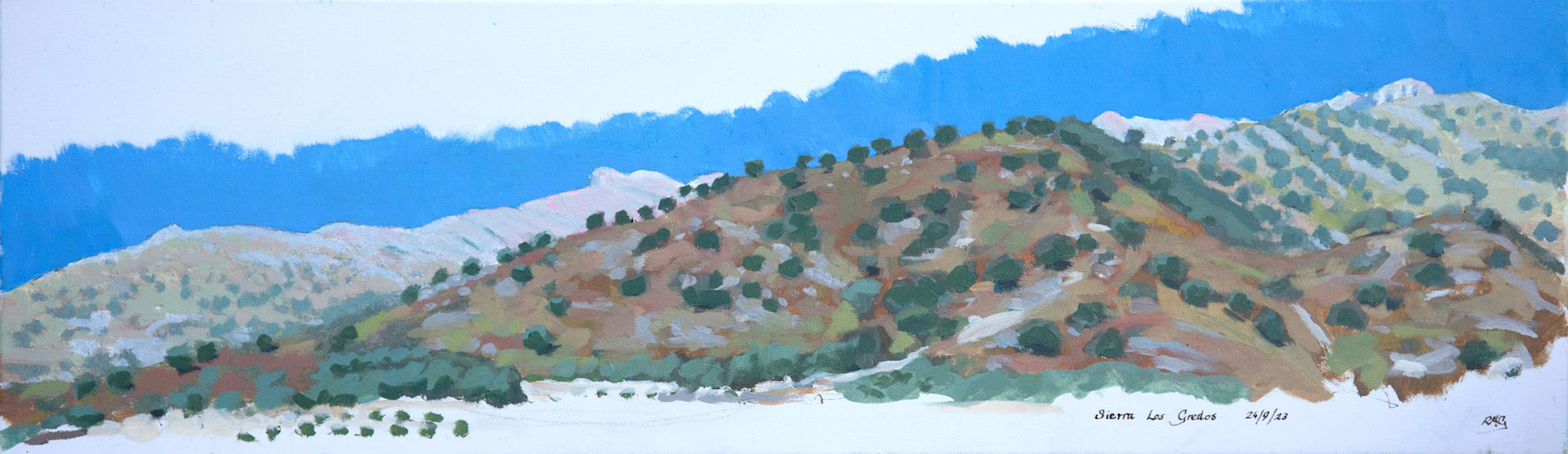 There are many mountain ranges or Sierras in Spain but only four can be considered major: Pyrenees, Picos del Europa, Sierra Nevada and the Sierra de Los Gredos which extend westward from Madrid and form the northern barrier boundary to the region of Extremadura. Pico Almanzor rises to 2592m above sea level. My friend Paddy Waller joined Mandy and I as we headed to Los Gredos on 23 September 2023 for a 'serious hike' up into these big mountains. It is a fabulous landscape with a sun-bleached pink hue to the top peaks which leap out against the deep blue skies. There is something about the granite rocks that produces incredibly beautiful emerald green waters in the rivers and cascada flowing down the gullies. The hillsides are dotted with oak trees just like further South but with the higher rainfall in the mountains these oaks are much larger and leafier Pyreneen Oaks, Quercus pyrenaica, which produces copious acorns like its cousin the Holm Oak. Los Gredos is a regional reserve where Iberian Lynx and wolves find refuge in the wild peaks. We watched Griffon Vultures, Booted Eagle and a Kestrel overhead.