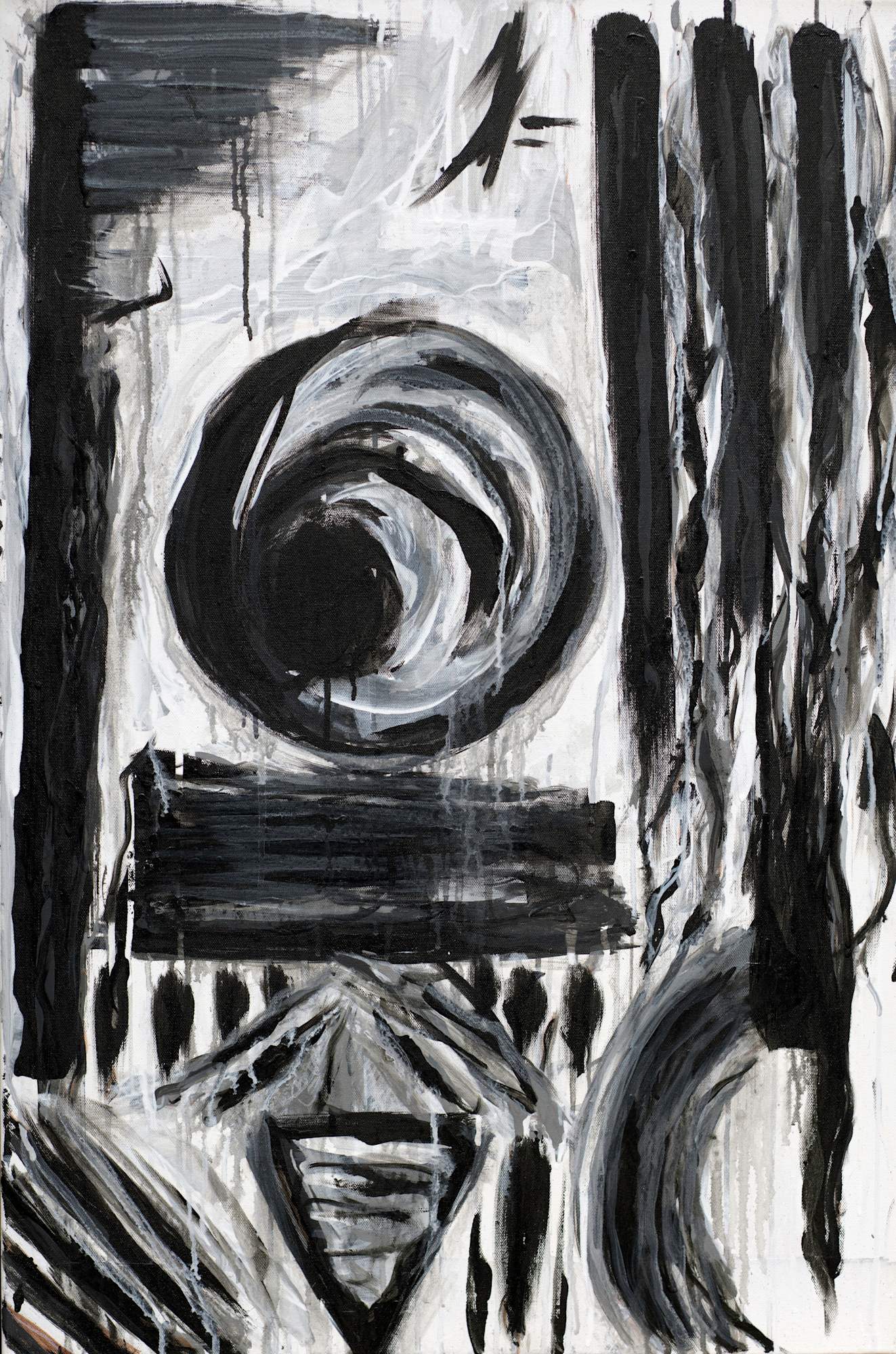 The use of mixed media adds layers of texture and depth, with the acrylic paint applied in thick, expressive strokes that convey both the artist’s emotional intensity and the physicality of the medium. The piece’s monochromatic scheme enhances its timeless quality, making it versatile for various settings, from contemporary galleries to minimalist homes.