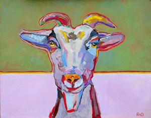 It’s funny how the impact of art comes through indirectly. I really like Fritz Sholder;s work and spent some time at the Tucson Museum of Art, starring at his, “American Portrait #28” in particular. I just love his powerful, color strong images and as i painted this goat, i felt him heading toward the Fritz camp.