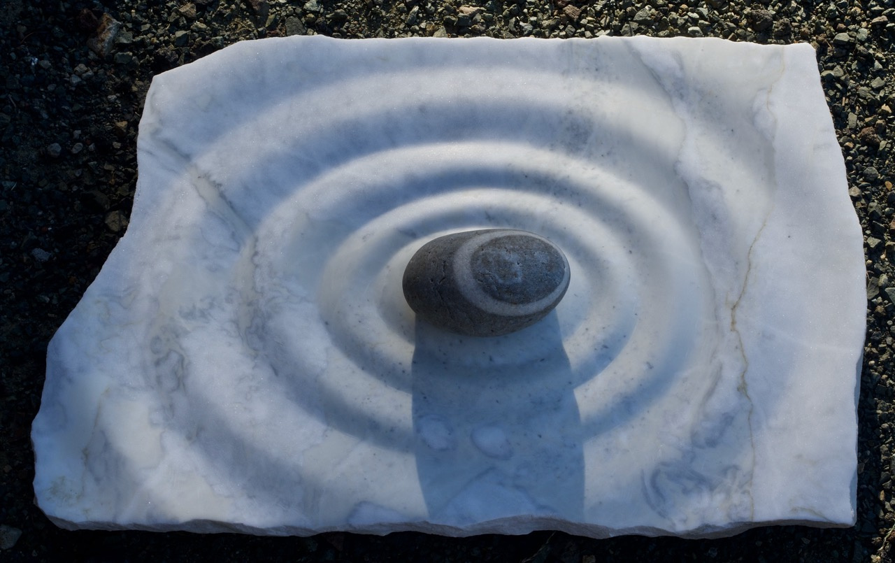 Found stone inlaid into carved marble