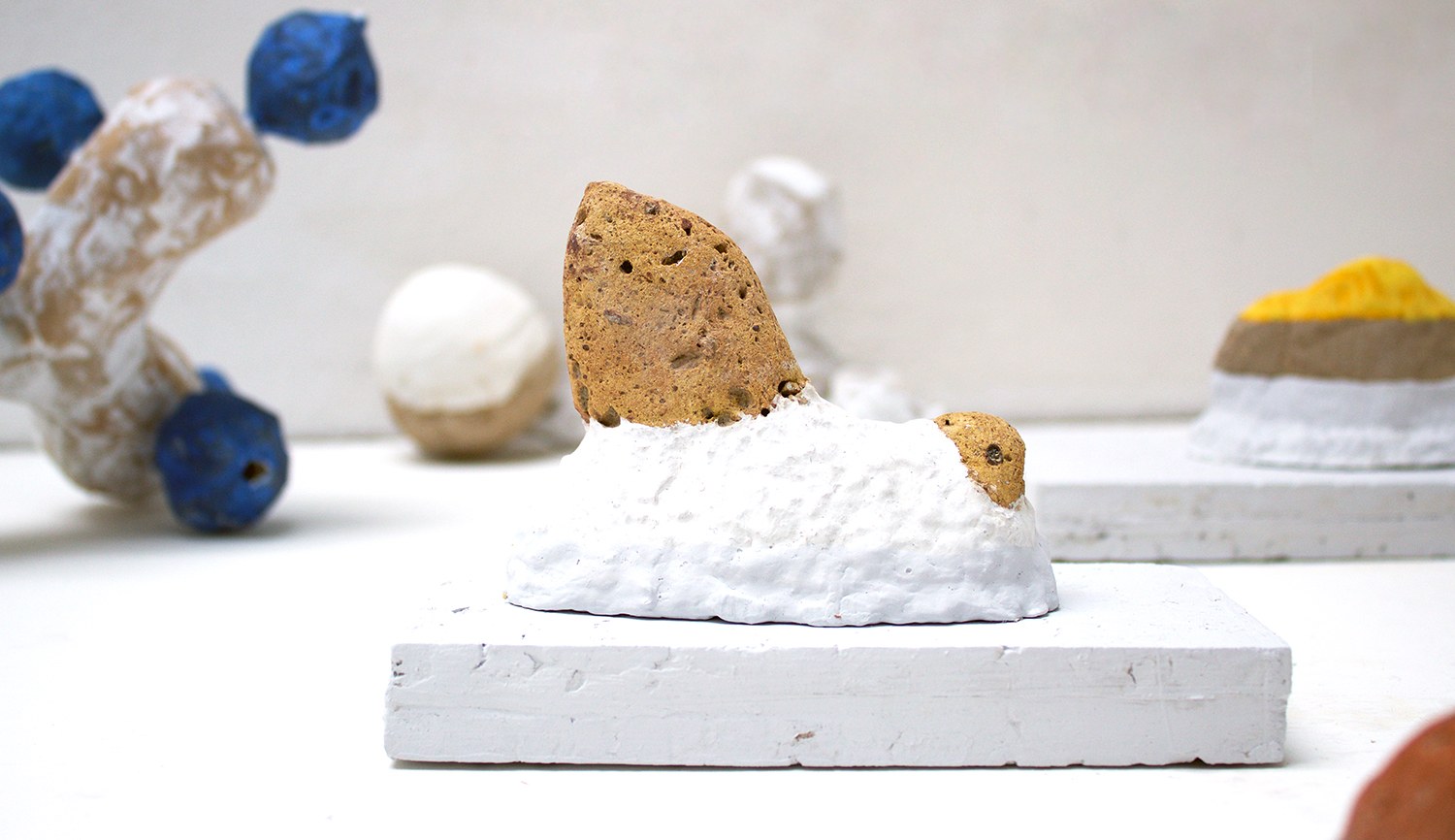 I had a mudlarking license when I lived in London and would walk along the Thames and pick up bits of pottery, bricks and glass and bring them back to my studio to sort and arrange. In this piece the parts are held in composition by reconstituted cardboard pulp, painted and arranged.