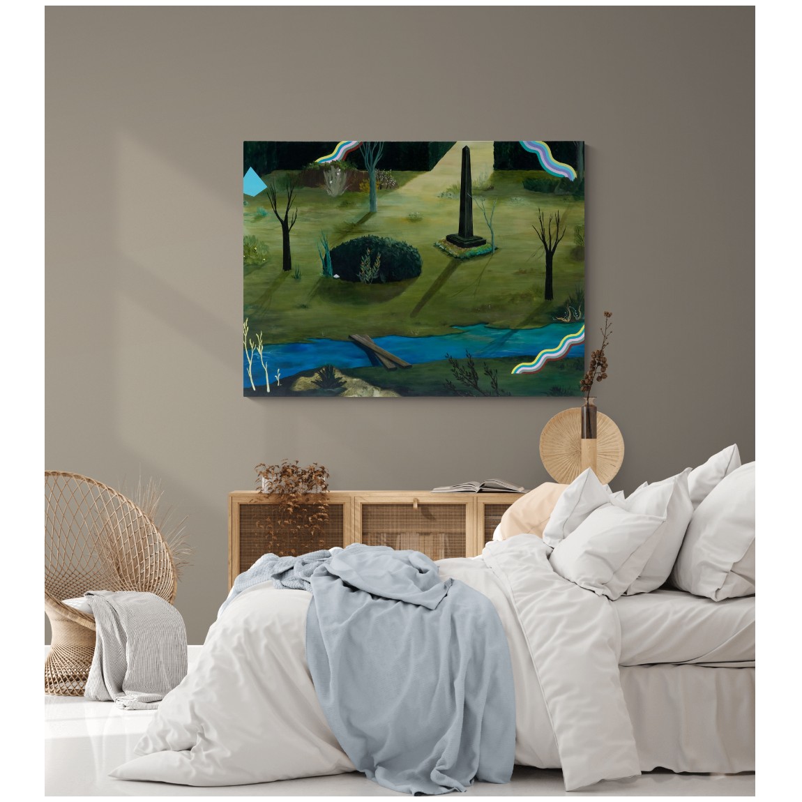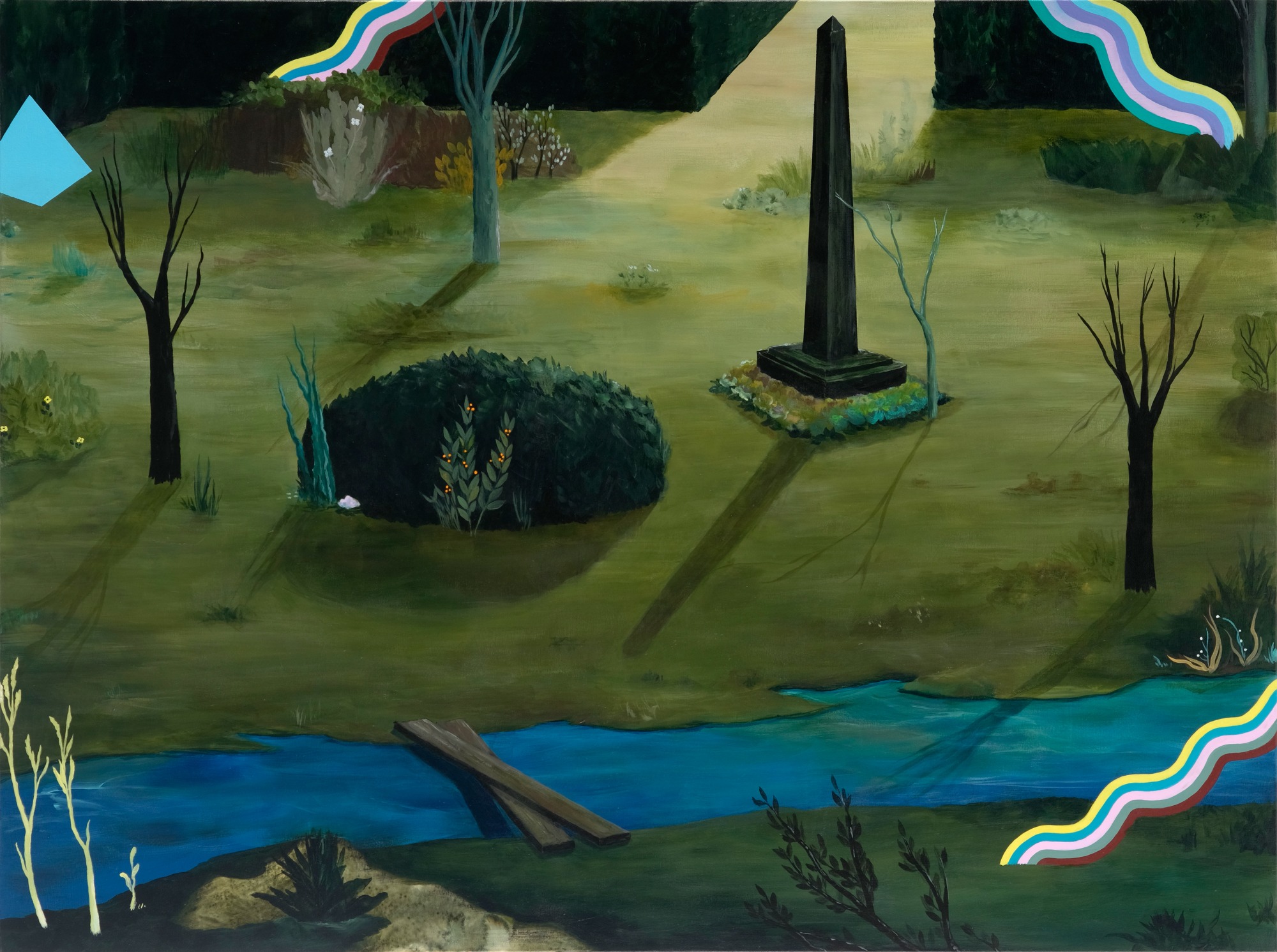 When I created Obelisk Garden I was thinking about how our psyche could be viewed as an "inner landscape". I wondered what the creative part of that landscape would look like and came up with these paintings I called Eccentric Gardens. These hard-to-find gardens were often walled in by dark green hedges and brimming with creative energy.
