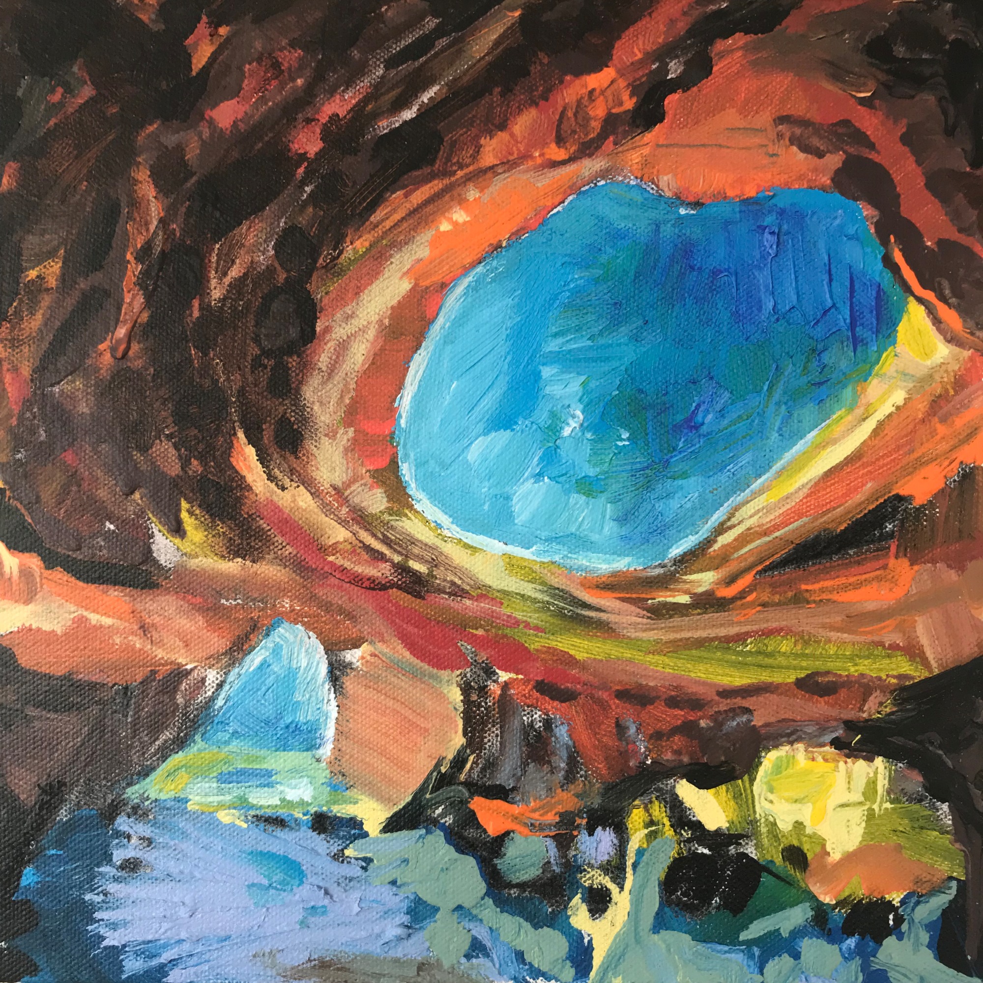 This piece is a depiction of an open ceiling sea cave located on Sunset Cliffs in San Diego, Ca.