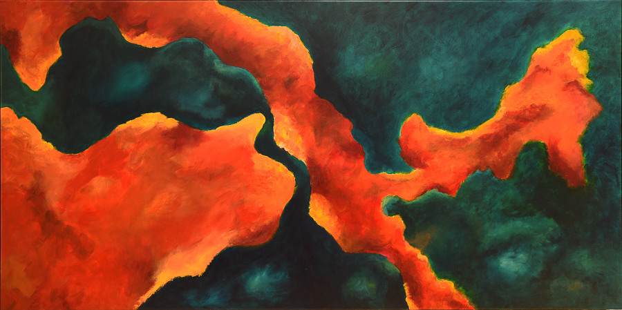 The inspiration for my current body of work is intergalactic space exploration. Ever since I watched the moon landing in 1969 I have been fascinated by the images beamed back to us across the vast expanse of space and time. To me, they represent a form of time travel. Since the light from the vastness of the universe takes so long to reach the Earth, it’s as if we are looking billions of years into the past. Additionally, they evoke a sense of divinity, in that we are looking at the beginnings of creation. I want my paintings to help connect us to that expansiveness.