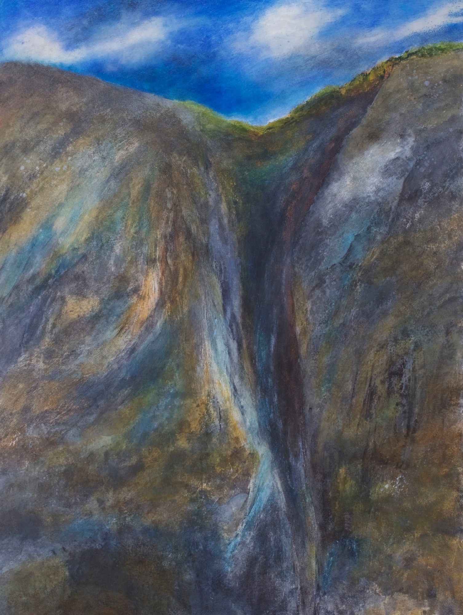 Devil's Slide is a rock cliff formation and there are more than several throughout the United States with this name. For me, this painting was inspired by Devil's Slide, a cliff located on the side of Cinnabar Mountain, near Gardiner Montana and the north entrance to Yellowstone National Park. The slide was created from alternate beds of limestone, sandstone, and quartzites that have tilted to a near vertical presentation and have eroded at different rates. The natural world is so fascinating!