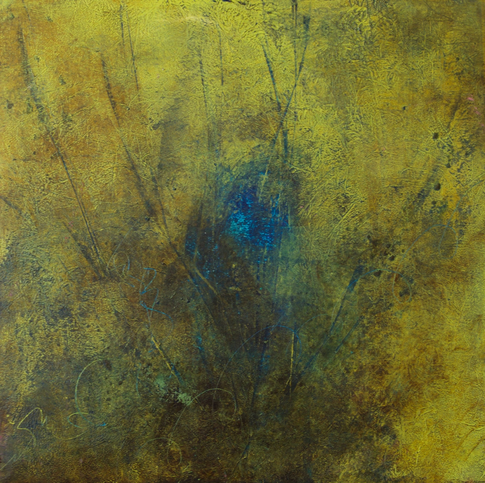 Mixed media, oil and cold wax on cradled panel.