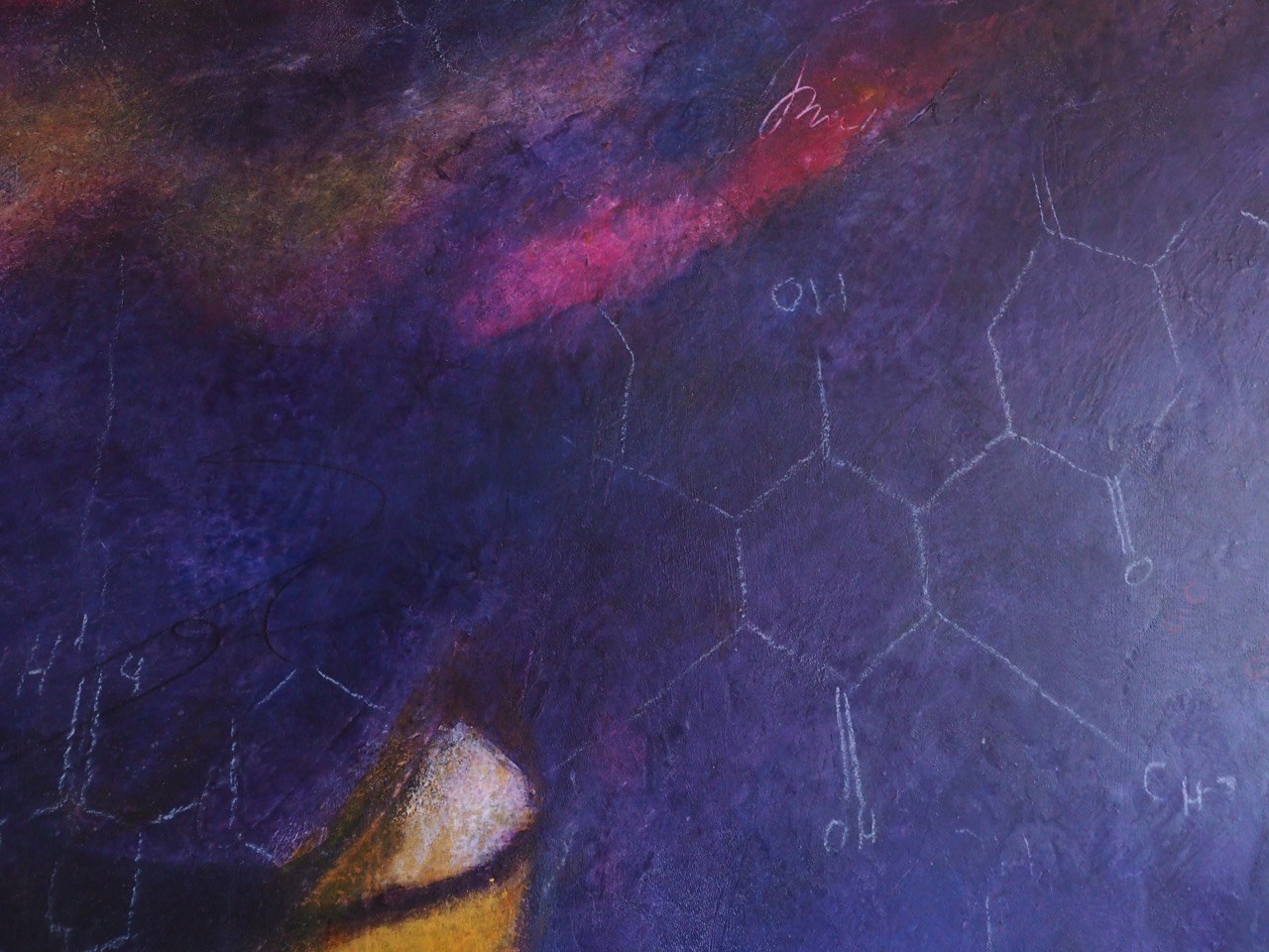 Oil, cold wax, and pastel on cradled panel. In the series Life, Love, and Other Natural Disasters.